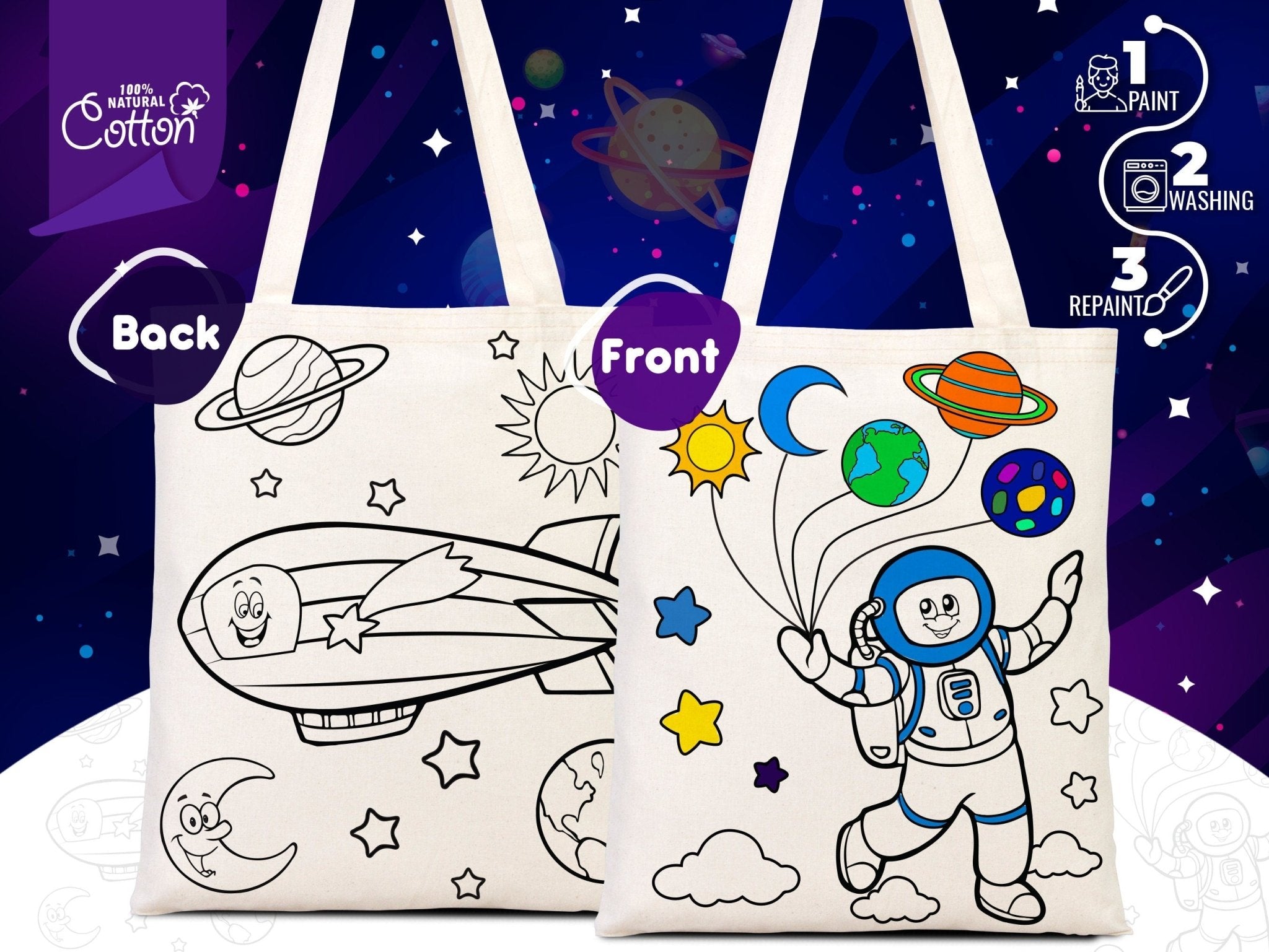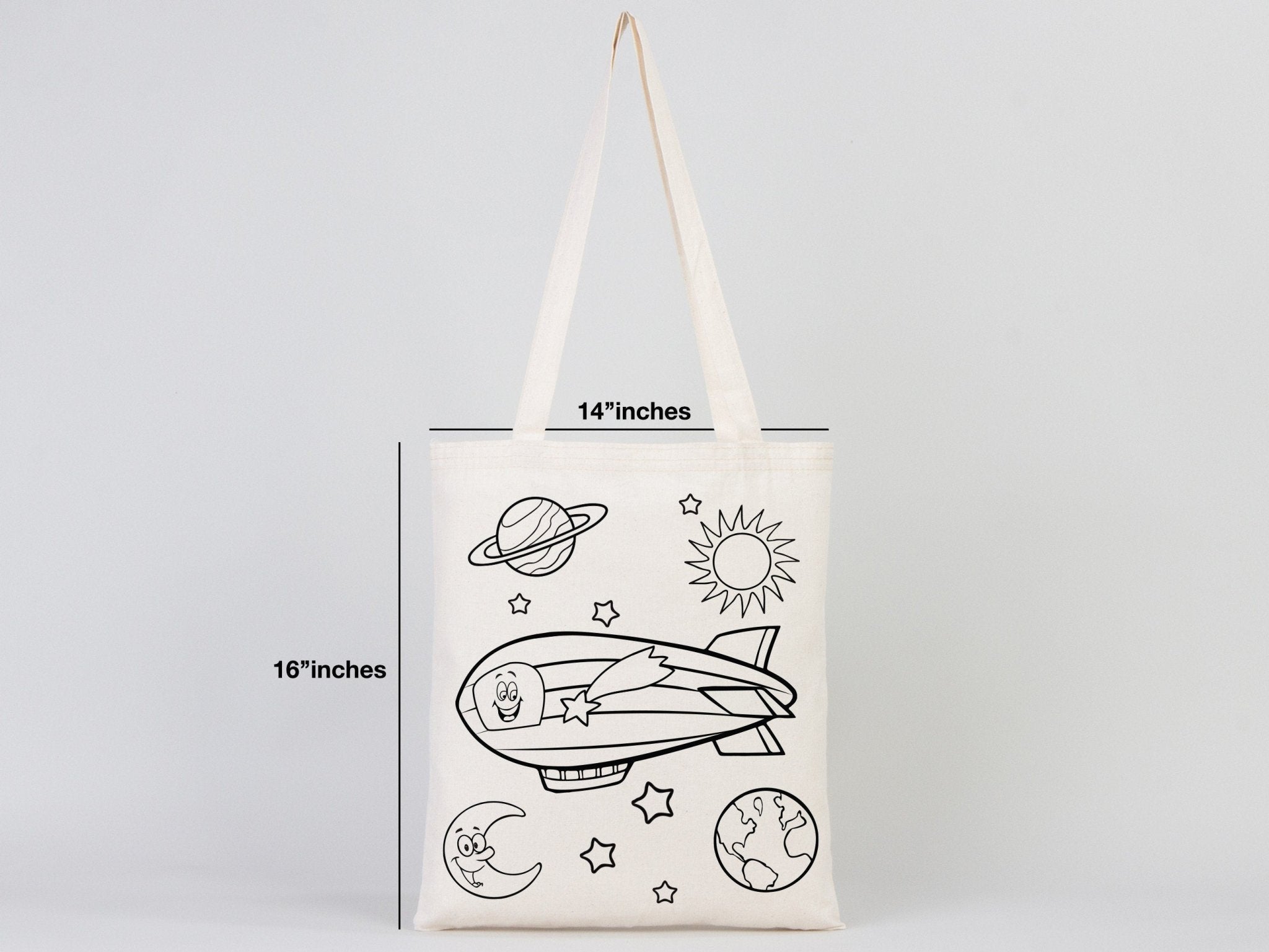 Astronaut & Zeppelin Coloring Bag – Cotton Tote Bag with Handles (No Pencil Included)
