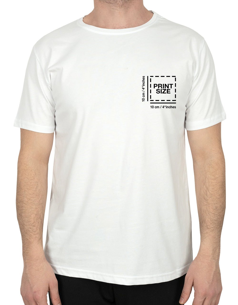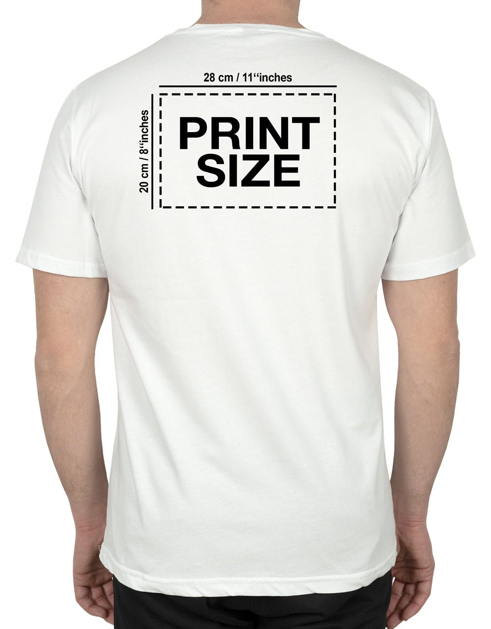 - The maximum print area size for a T-shirt is 10x10 cm. Print is available at additional charge for a larger print area. Full floor printing (using up to 0.5cc paint) can be printed at additional cost for your work. You can also get support from our account representatives to ensure that your design is full floor.