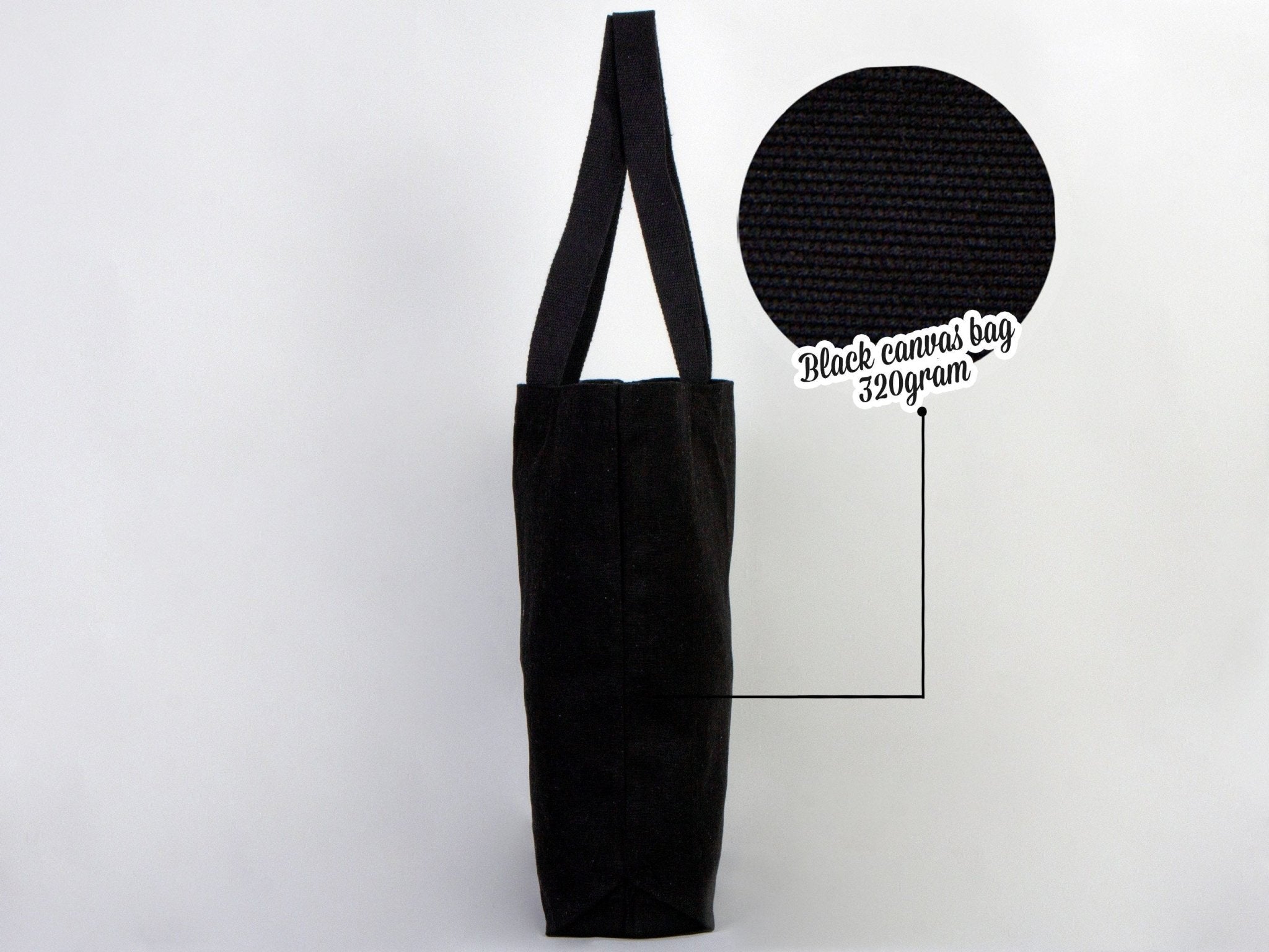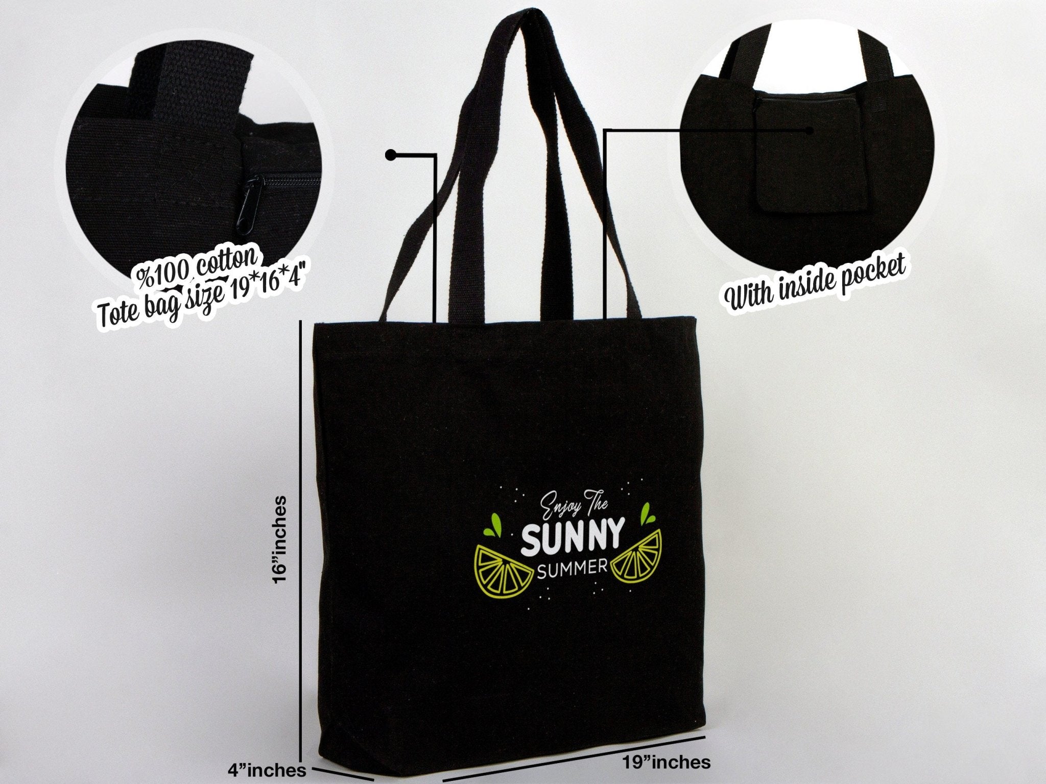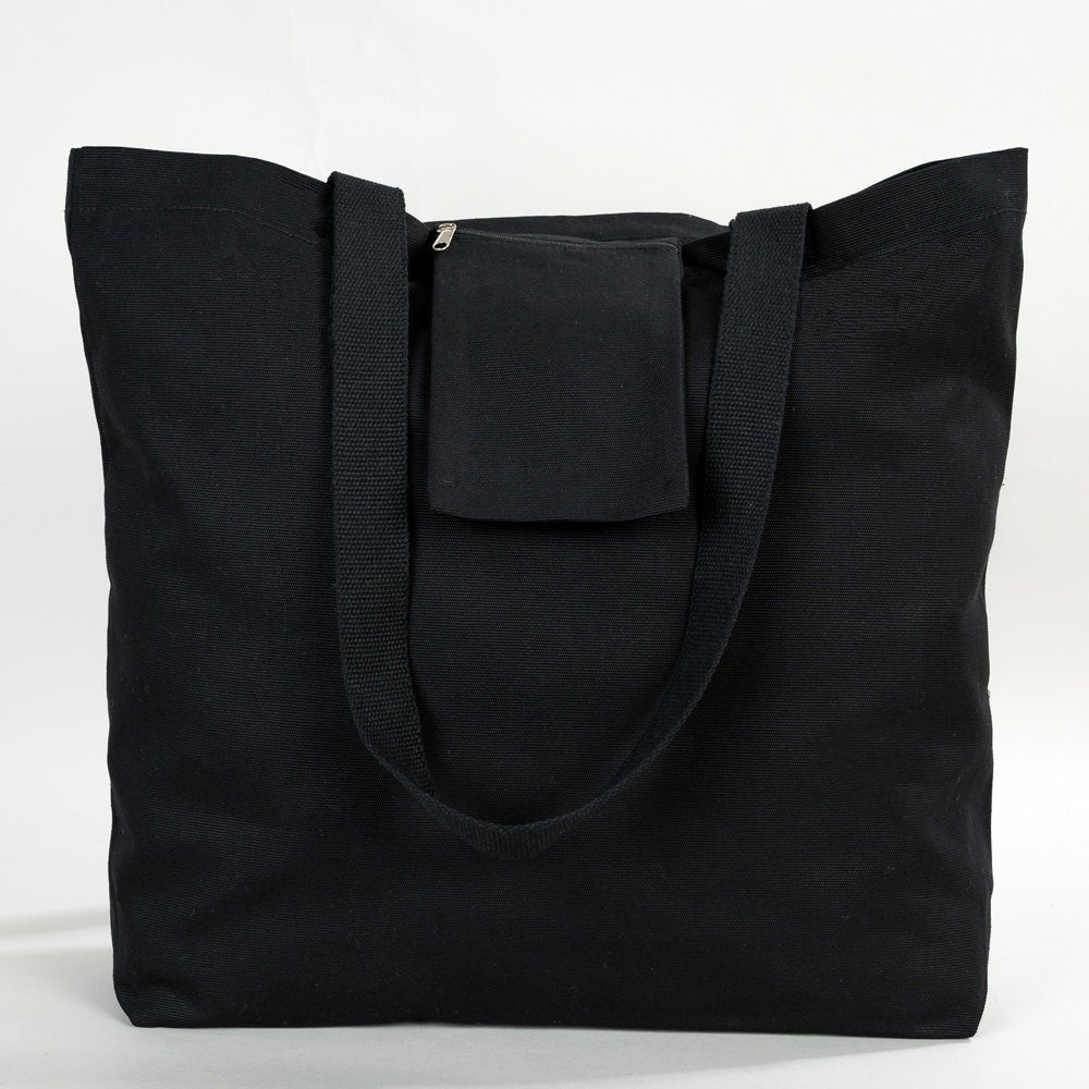 Black Canvas Beach Bag 19"x16"x4" – Large Eco-Friendly Tote for Shopping & Travel