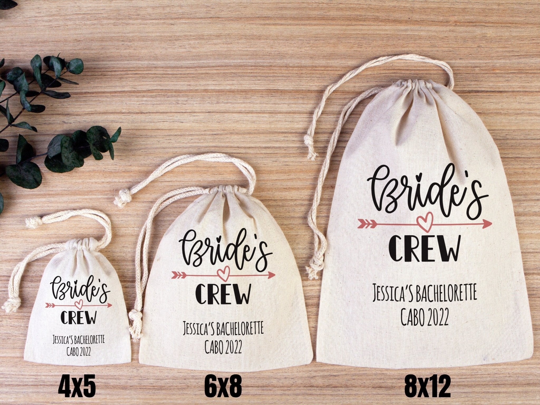 Bride’s Crew Favor Bags – Custom Bachelorette Party Cotton Pouches