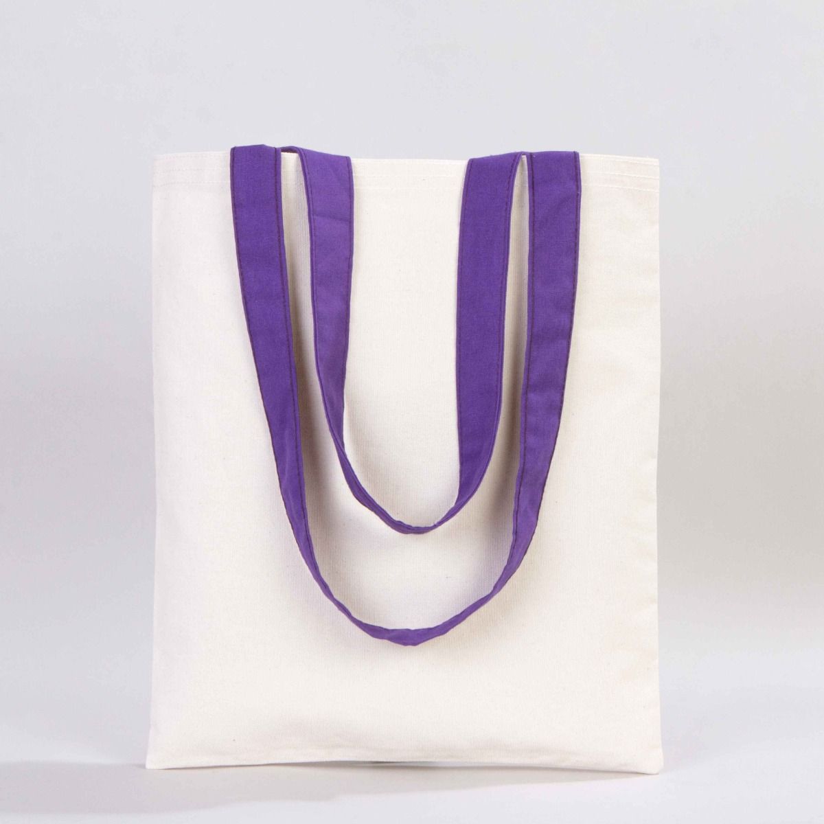 Canvas Purse with Purple Handles - 14" x 16" (35x40 cm) - 10 oz