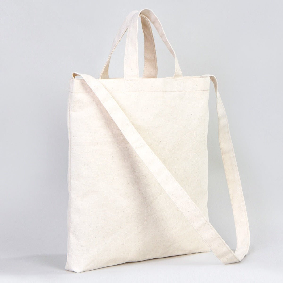 Large Canvas Tote Bag with Long Strap & Short Handles – Natural Cotton Shopping Bag