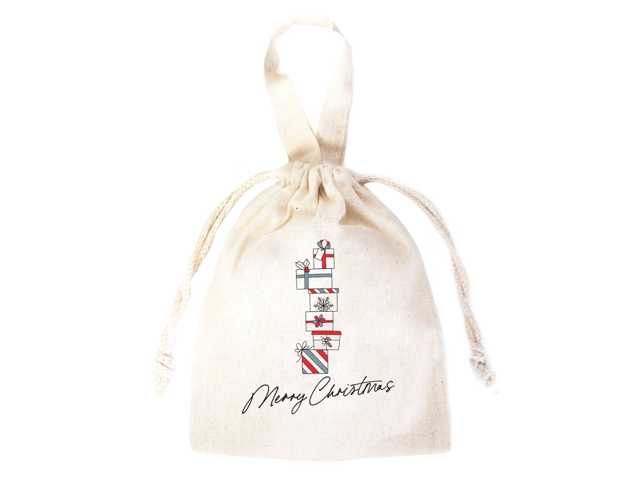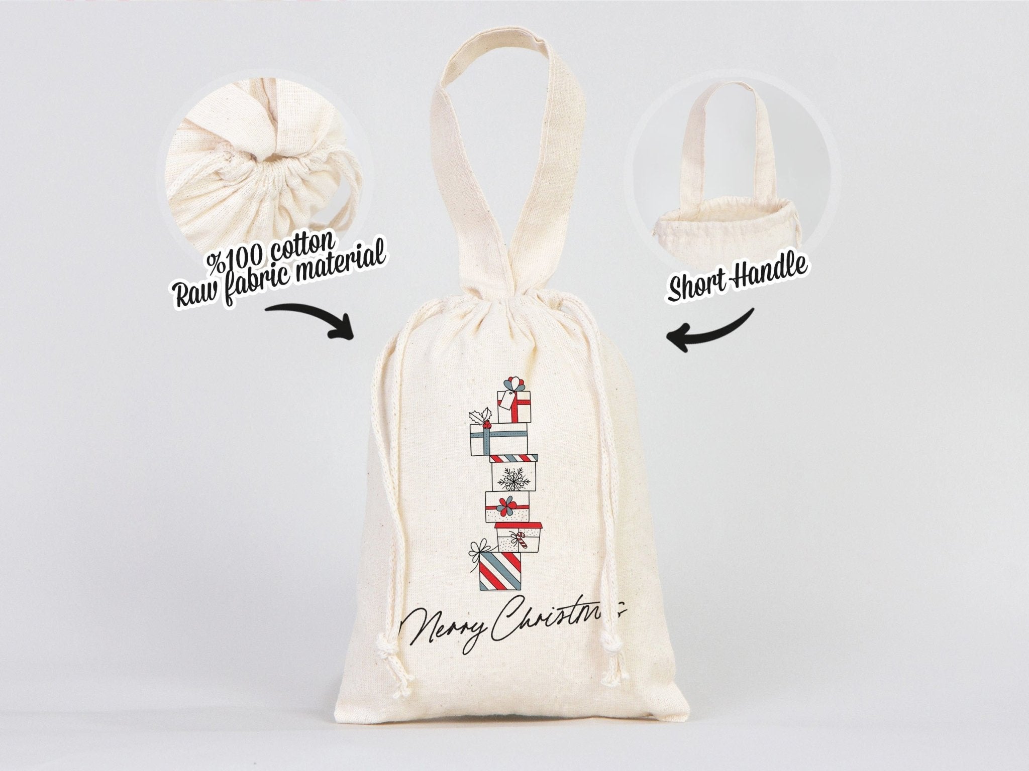 Christmas Gift Bags with Short Handles – 6" x 8" (15 cm x 20 cm) Personalized Cotton & Muslin Bags