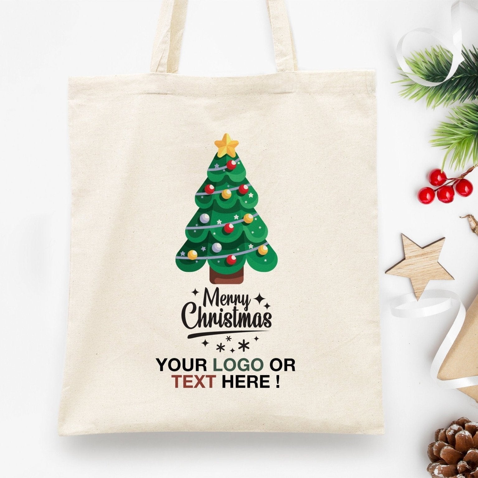 Merry Christmas Tree Tote Bag 14" × 16" (35 × 40 cm) Women's Holiday Gift