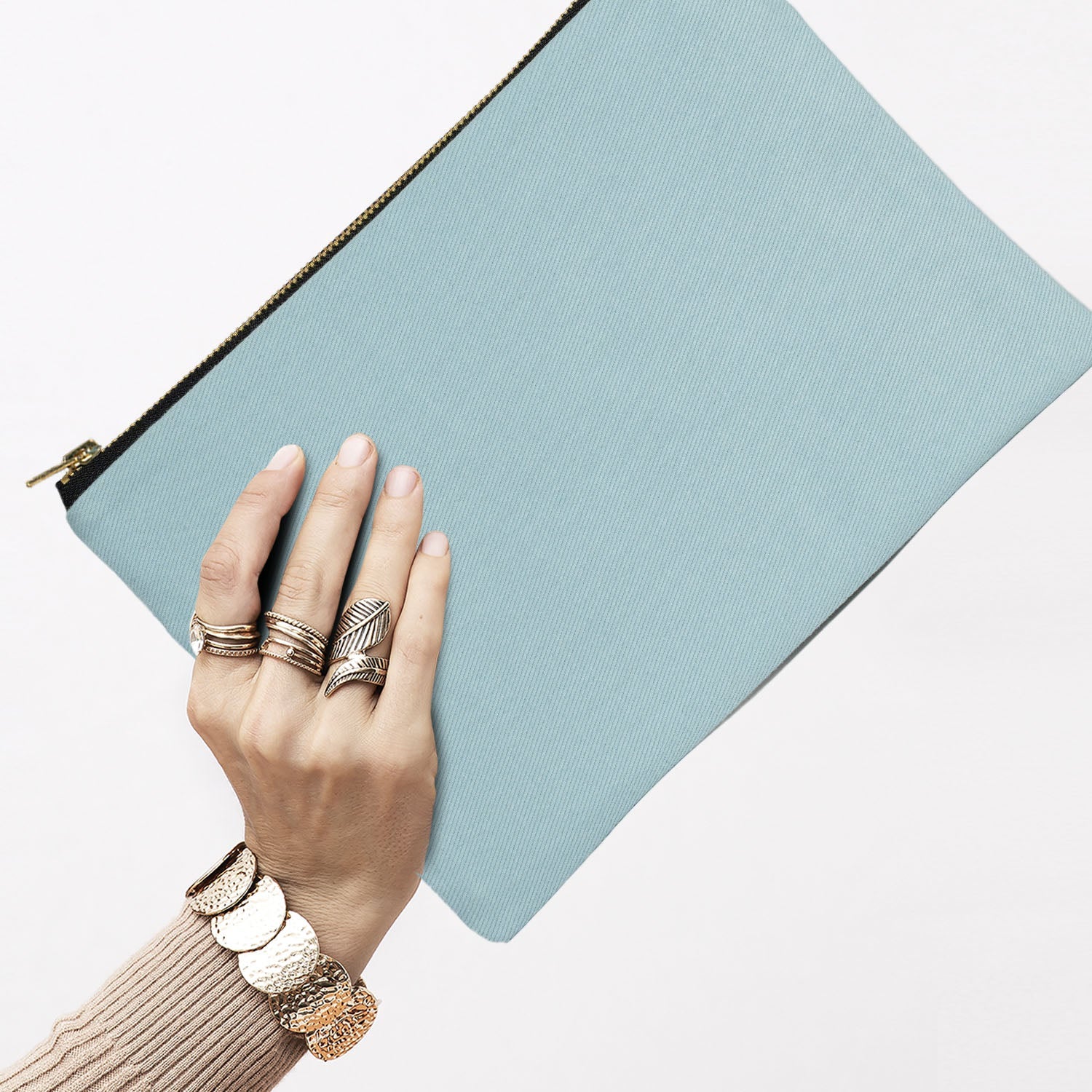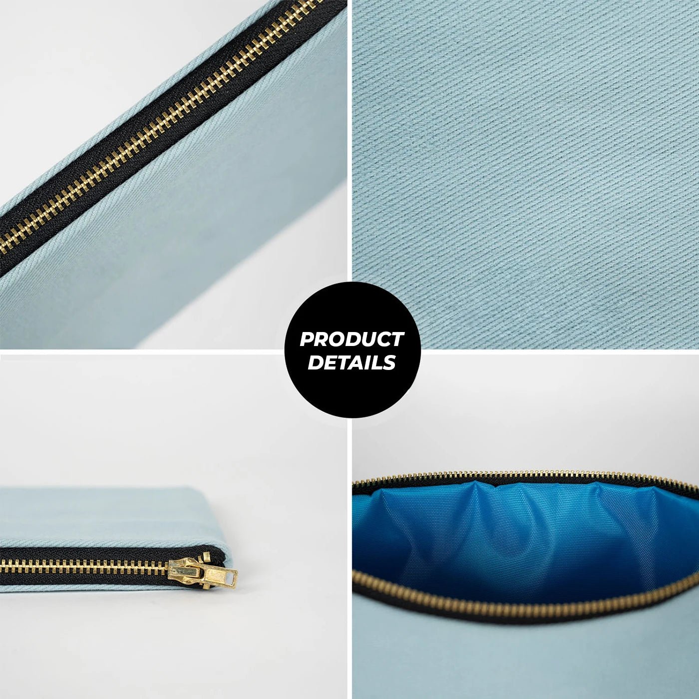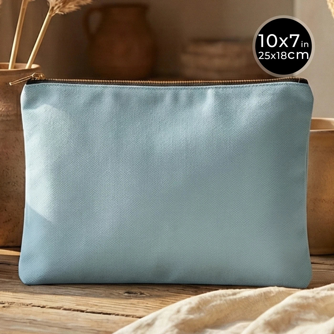 Light Blue Canvas Zippered Clutch Pouch – 10" × 7" (25 × 18 cm) – 10 oz