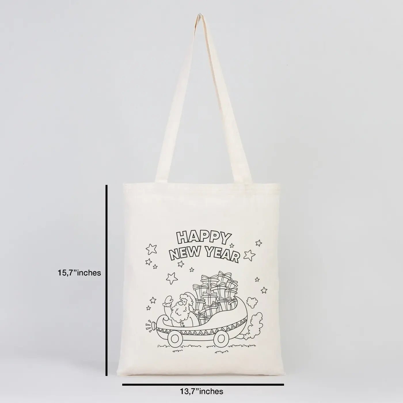 Coloring Happy New Year Cotton Tote Bag 14" × 16" (35 × 40 cm) – DIY Santa Design