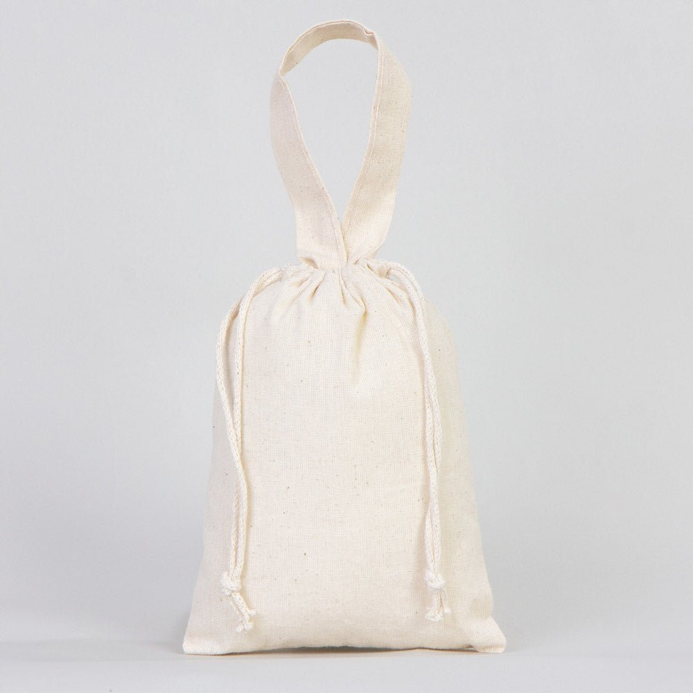 Cotton Drawstring Pouch 6"x8" | Natural Favor Bag with Short Handle