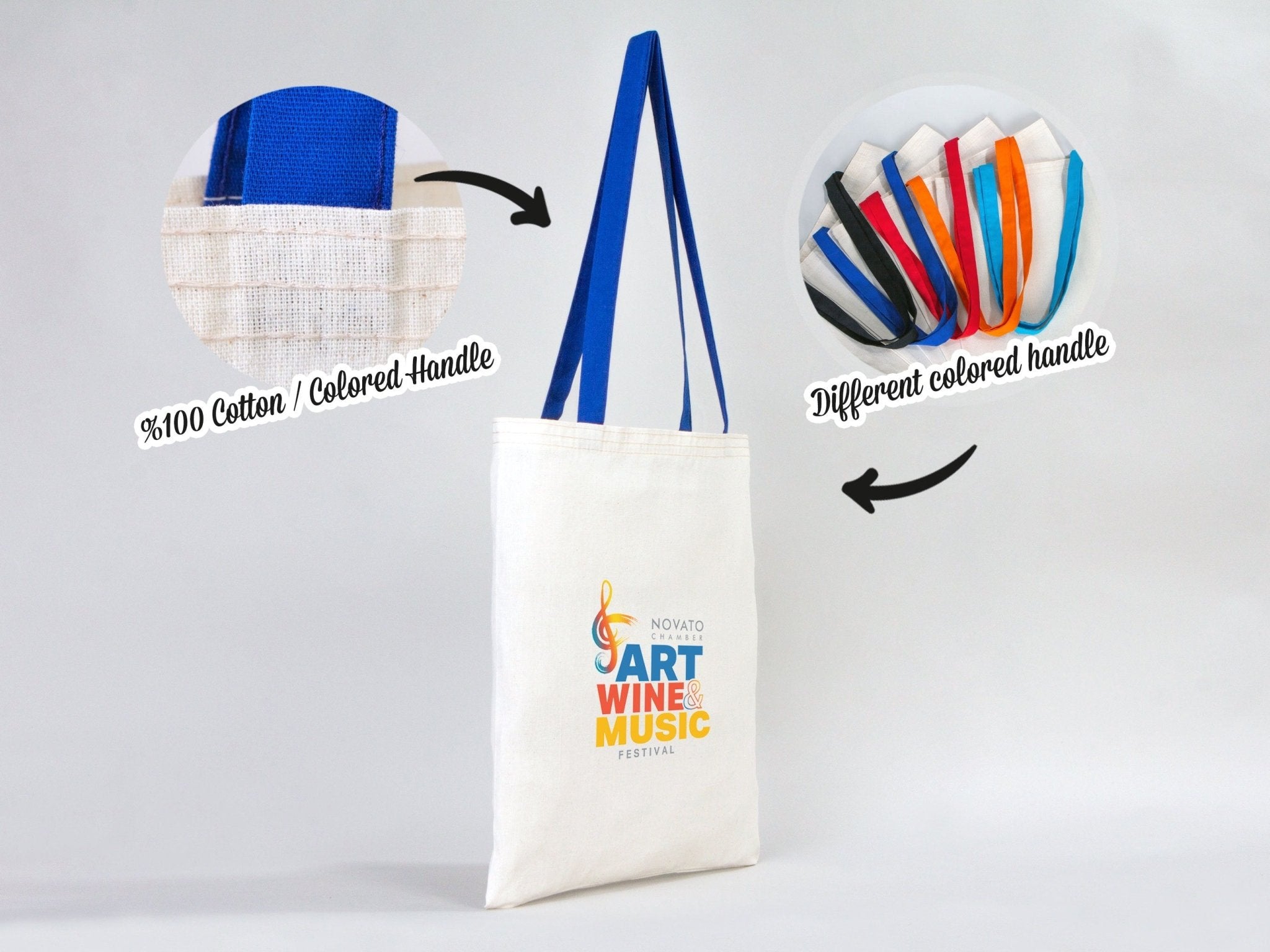 Cotton Tote Bag 14"x16" with Saks Blue Handles – Reusable Eco-Friendly Tote