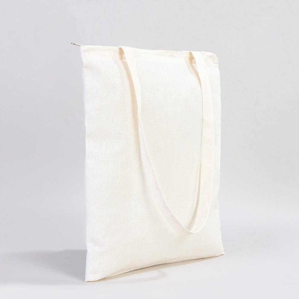 Cotton Tote Bag with Zipper 14"x16" – Natural Color Eco-Friendly Cloth Bag