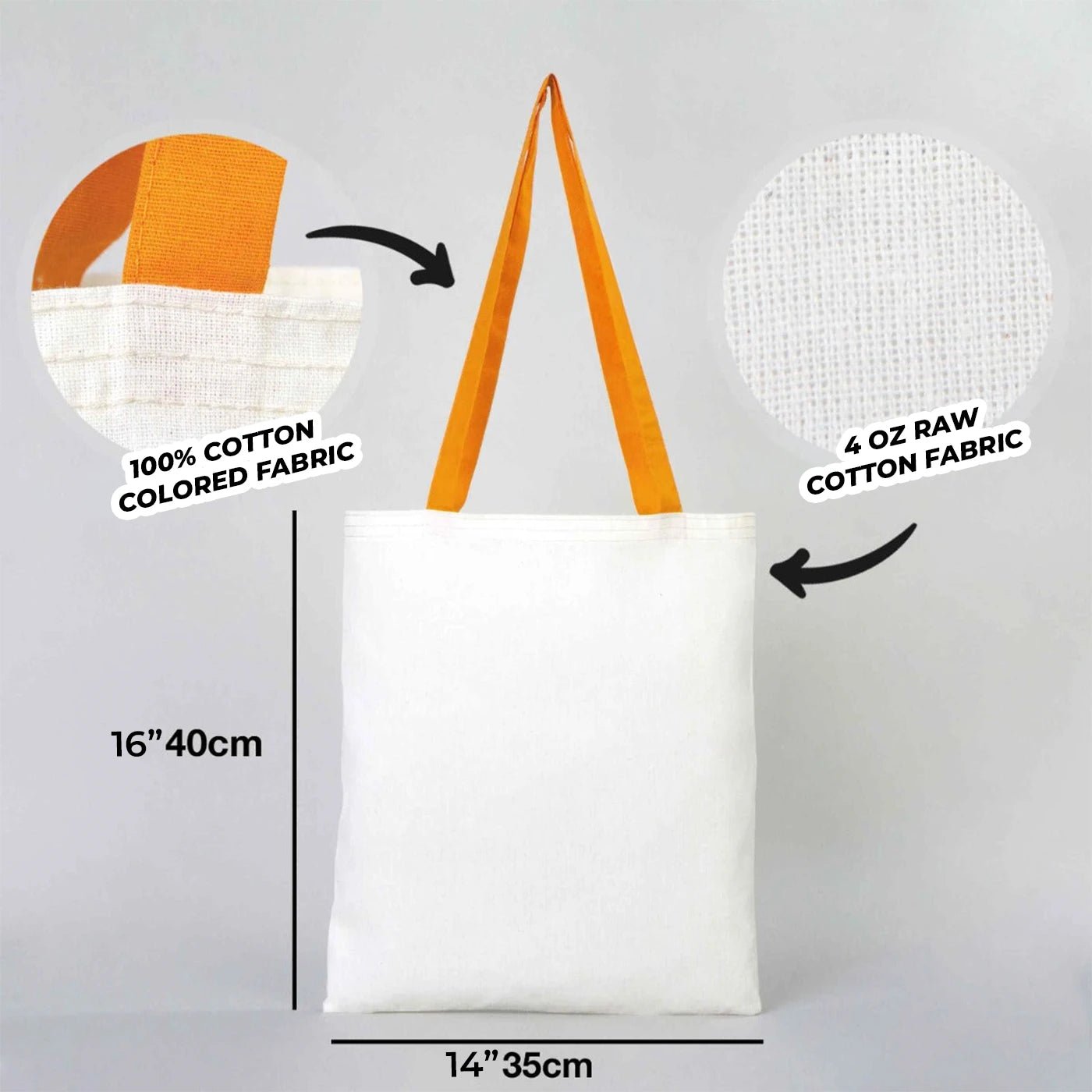 Cotton Tote Bag – Mustard Handles – 14" × 16" (35 × 40 cm) – 4 oz Blank Bag