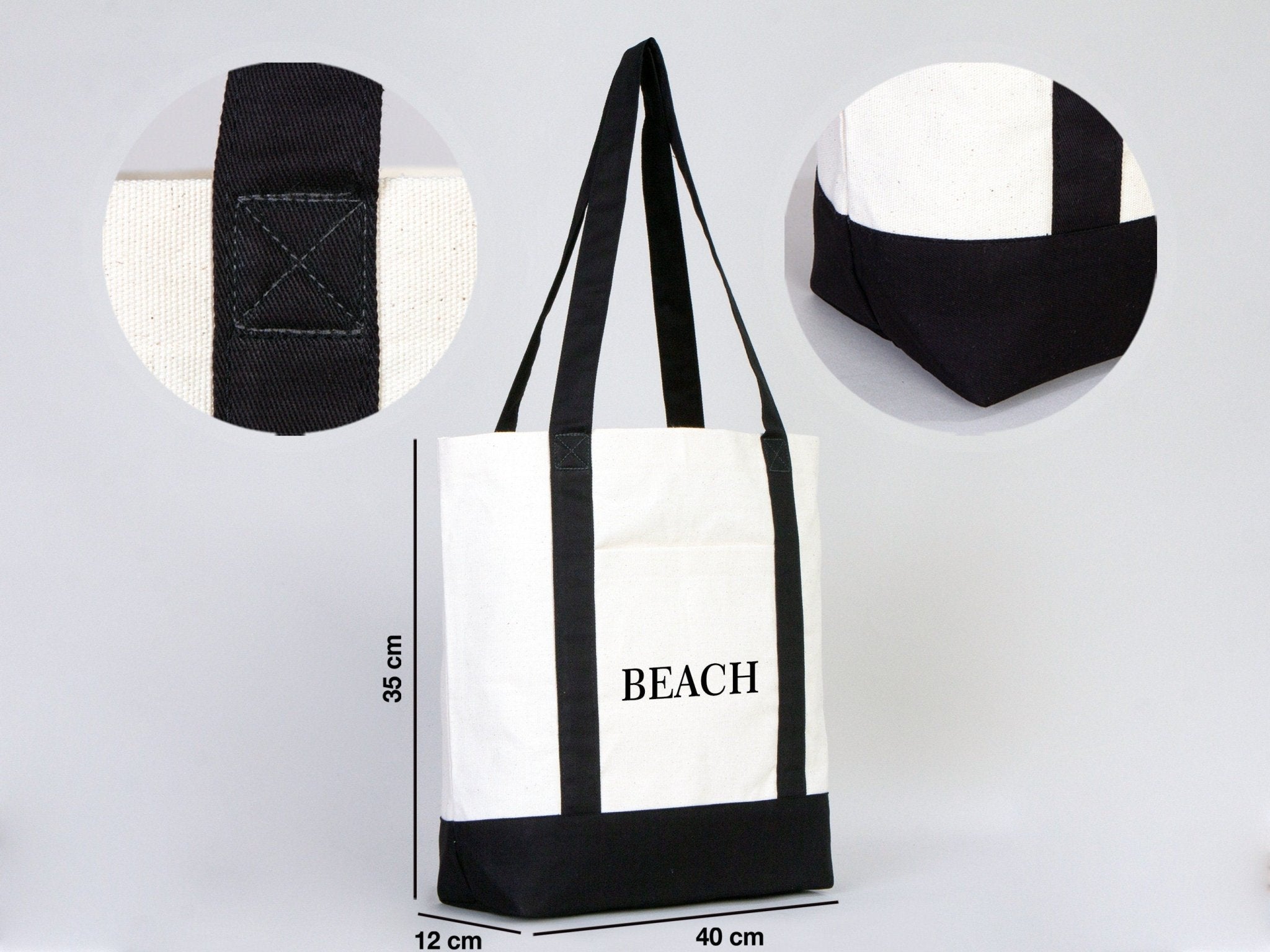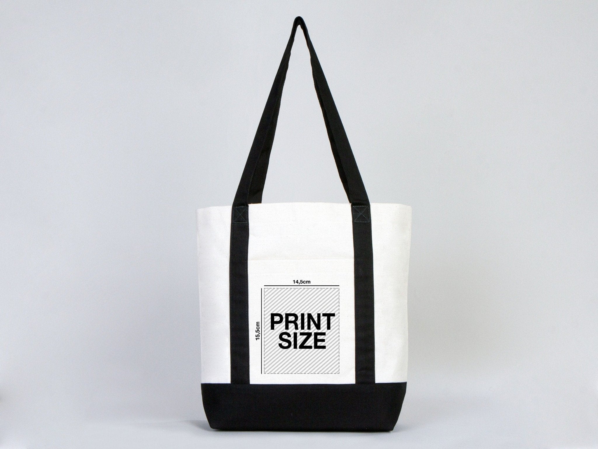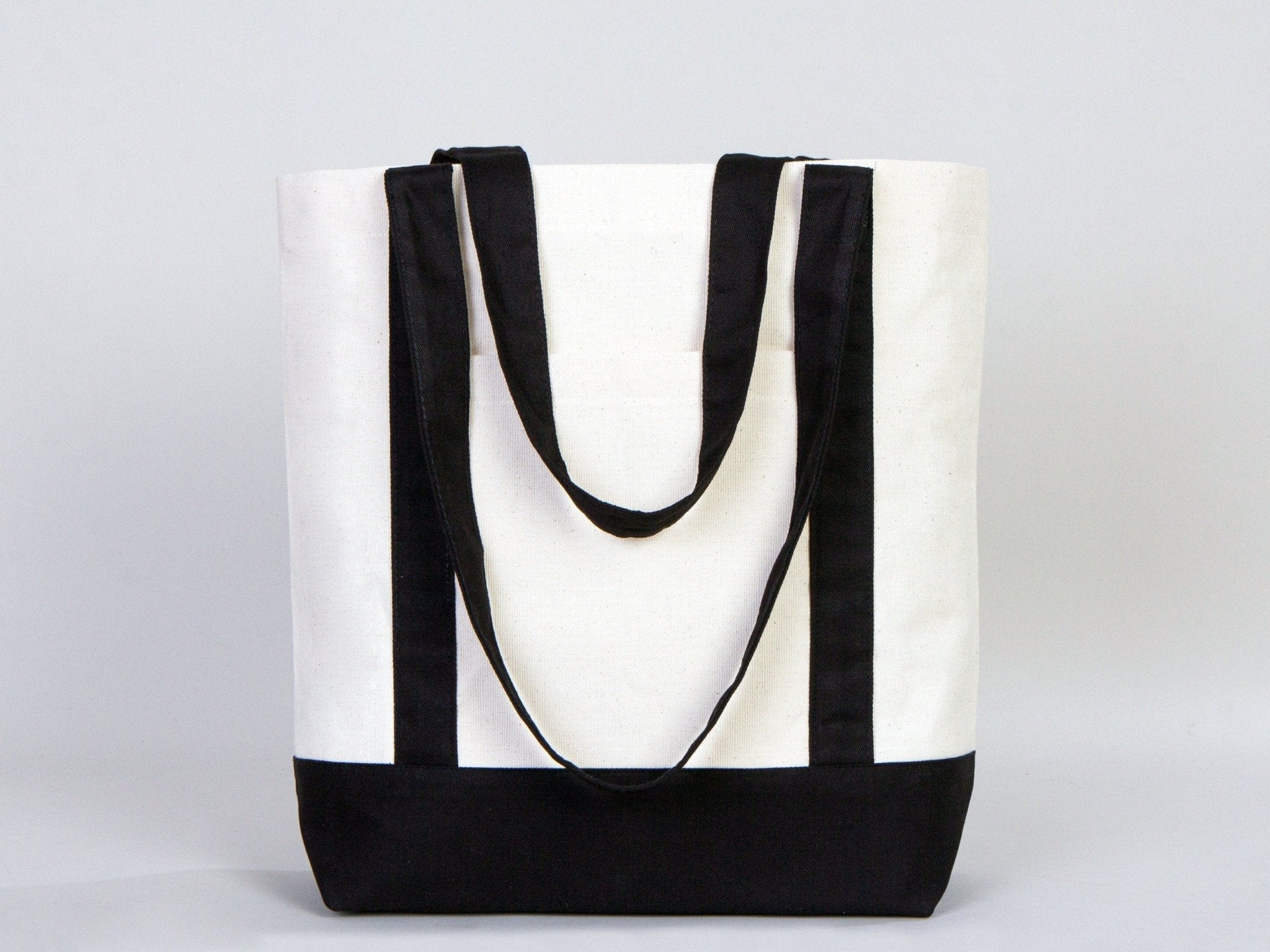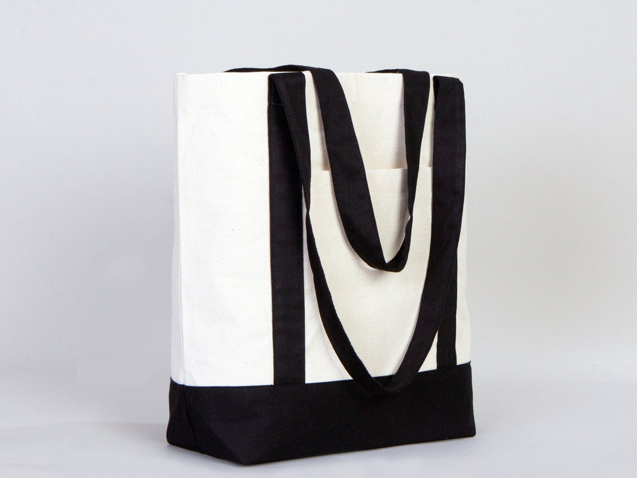 Large Trend Canvas Shopping Bag with Black Handle, 16"W x 14"H x 5"L, Large Tote Bag 12 Oz, Personalized