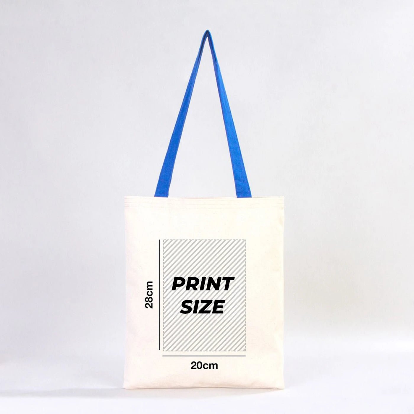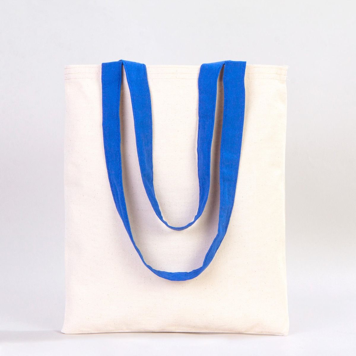 Custom Canvas Purse with Blue Handles - 14" x 16" (35x40 cm) - 10 oz