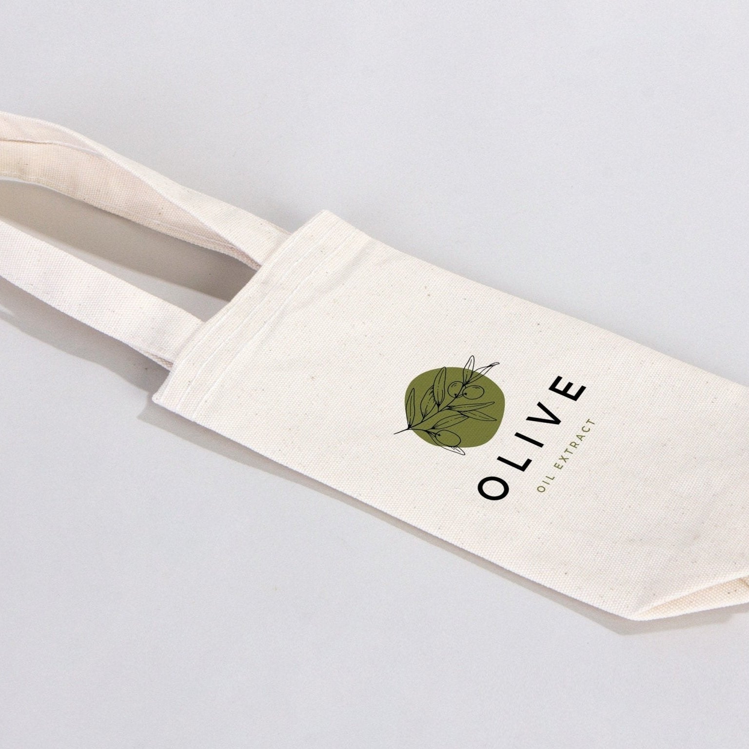 Custom Printed Wine Bottle Bag – Canvas Olive Oil Bag – 6" × 10" (15 × 26 cm) – Natural 10 oz