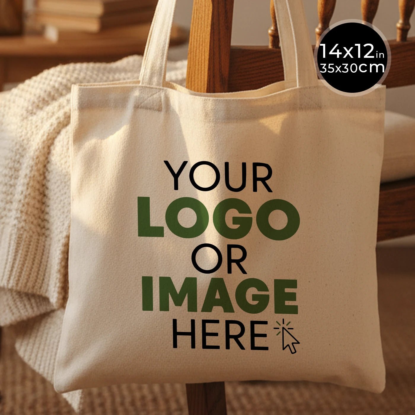 Custom Cotton Shoulder Tote Bag – 14" × 12" (35 × 30 cm) – Natural 4 oz