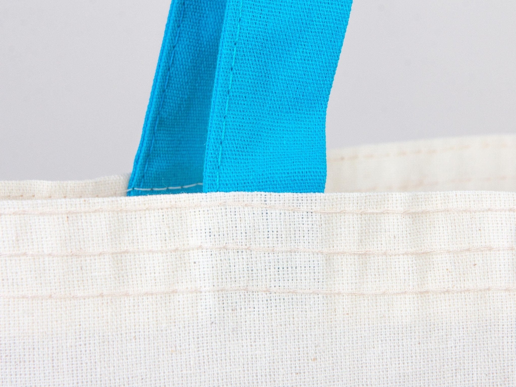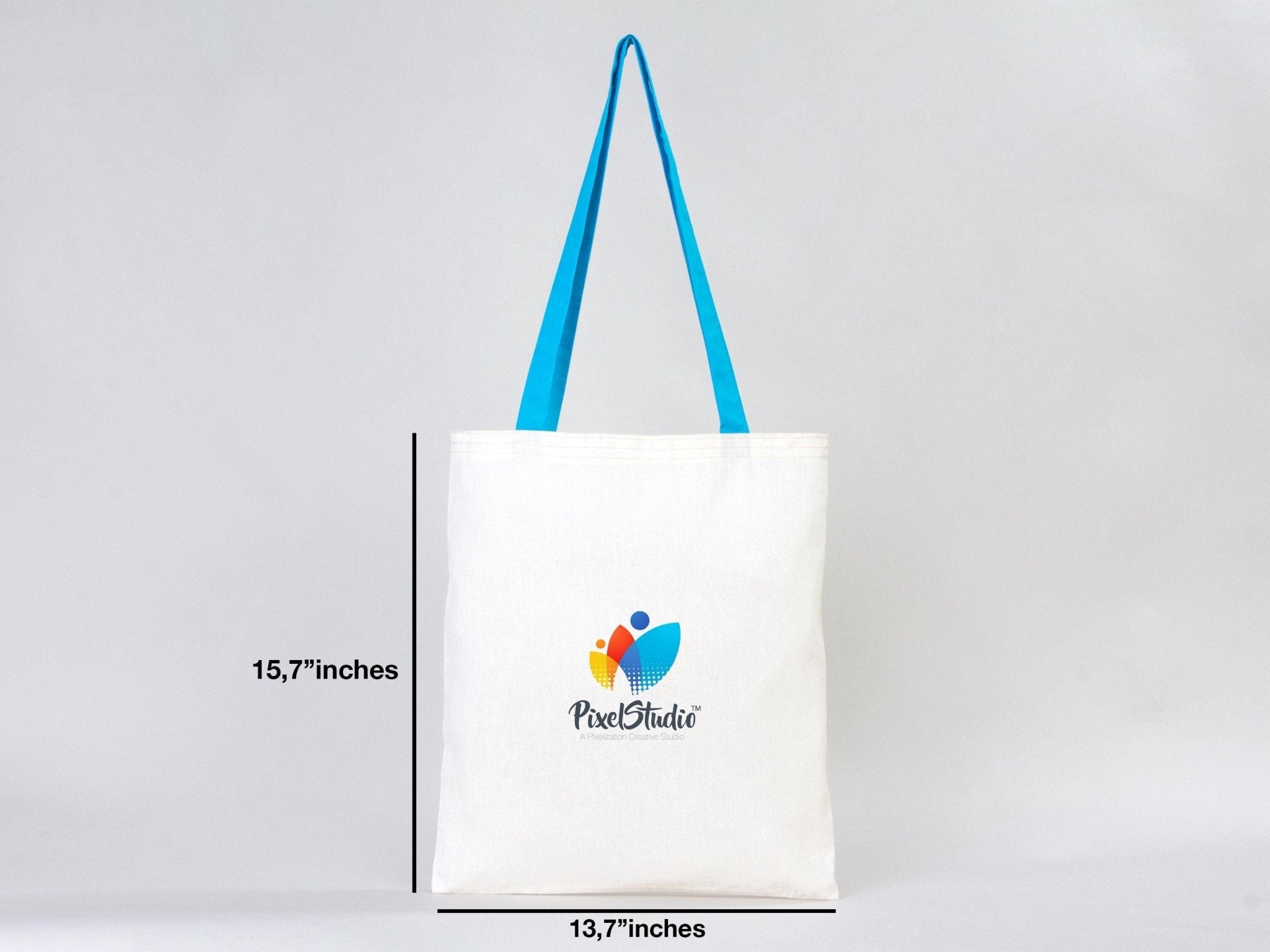 Custom Cotton Tote Bag with Turquoise Handles – 14"W x 16"H | Wholesale Organic Tote Bags