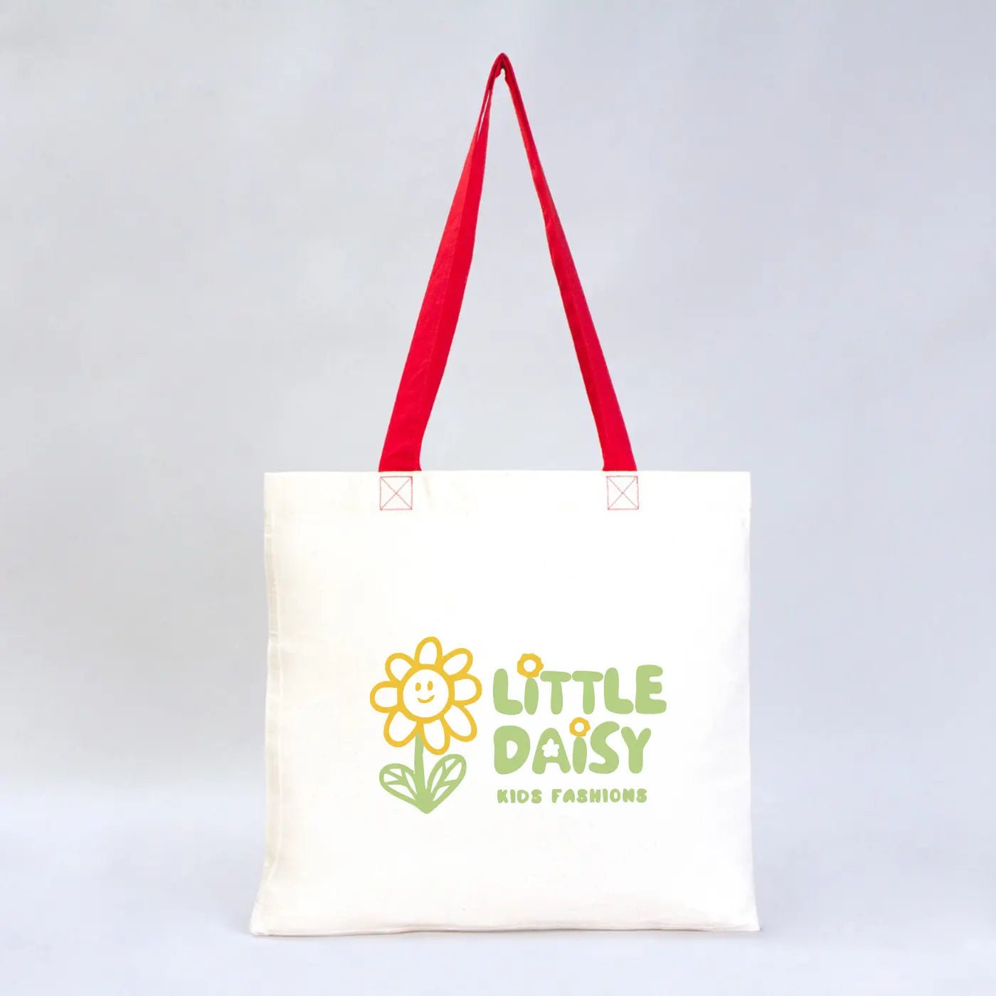 - Handle Type: Red cotton handles with reinforced stitch lines