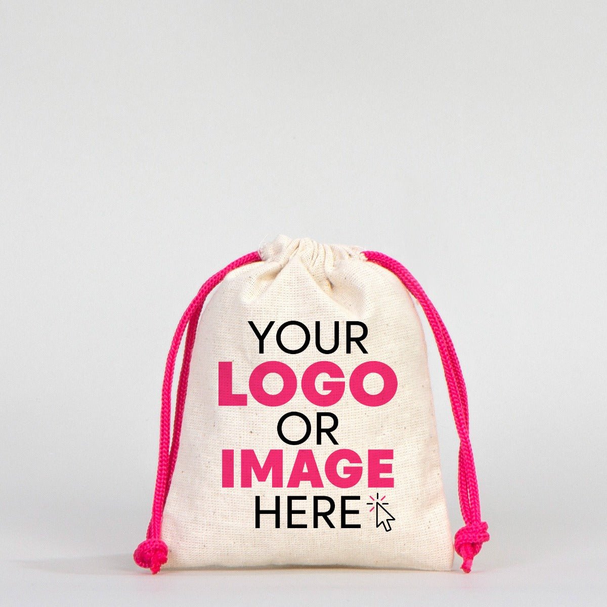 Fuchsia Handle Fabric Pouch - Customizable, 4" x 5