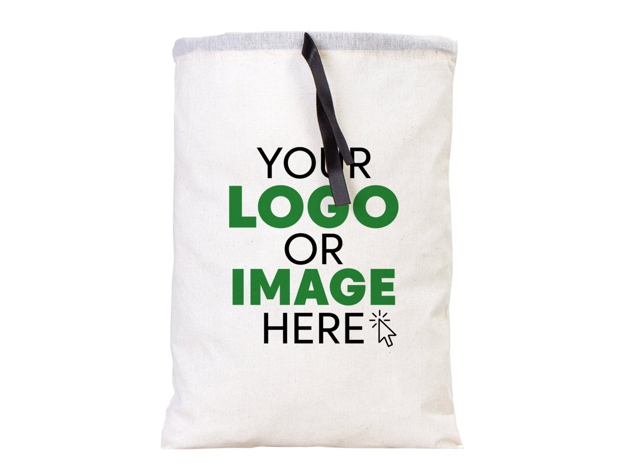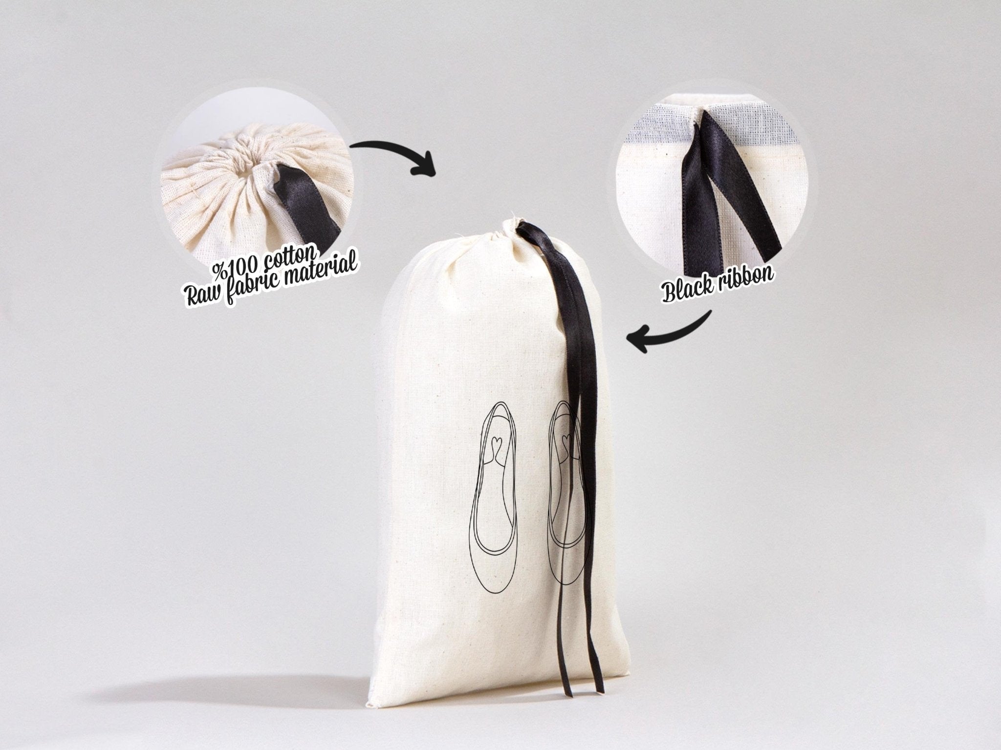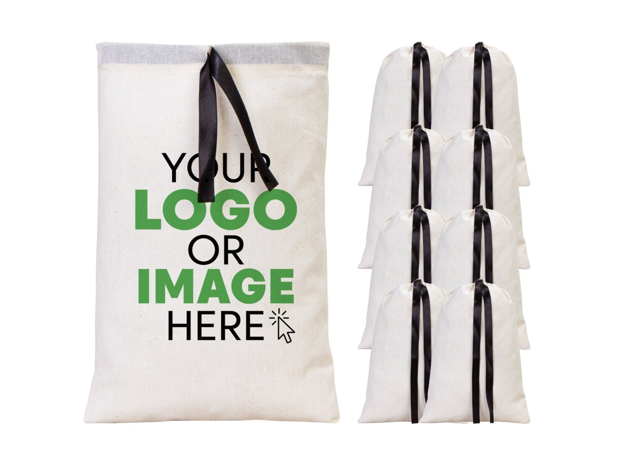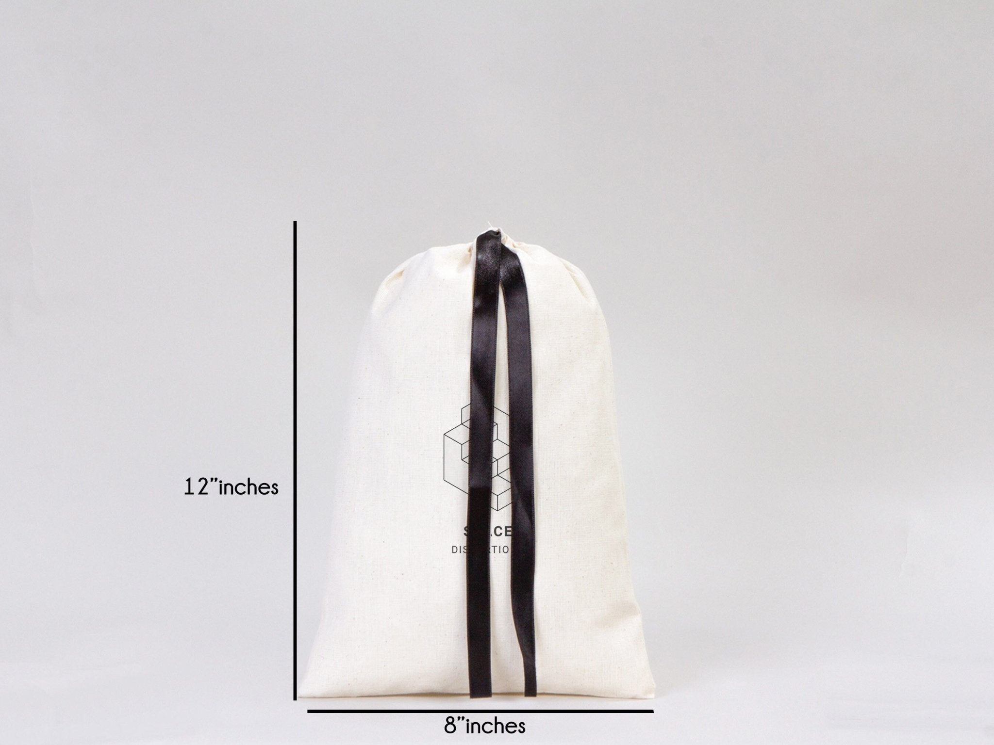 Custom Logo Printed Cotton Bags – 8"W x 12"H Bridal Gift Bags, Black Double Pouches