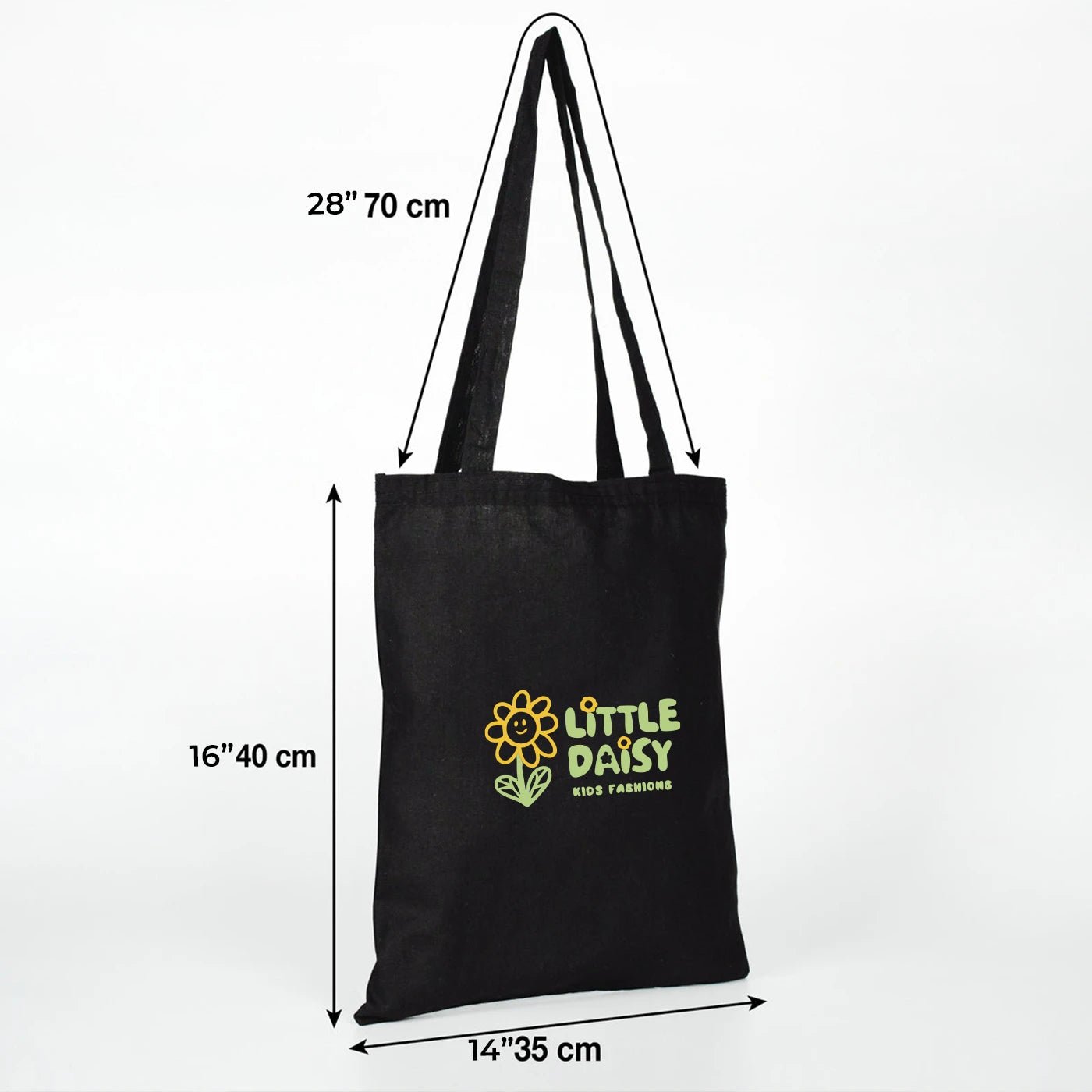 Custom Printed Black Cotton Tote Bag – 14" × 16" (35 × 40 cm) – 4 oz