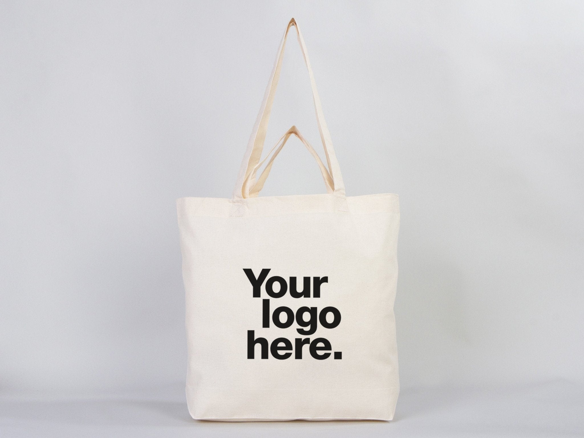 Custom Printed Cotton Grocery Tote Bag – 19"W x 16"H x 4"D Reusable Double Handle Shopping Bag