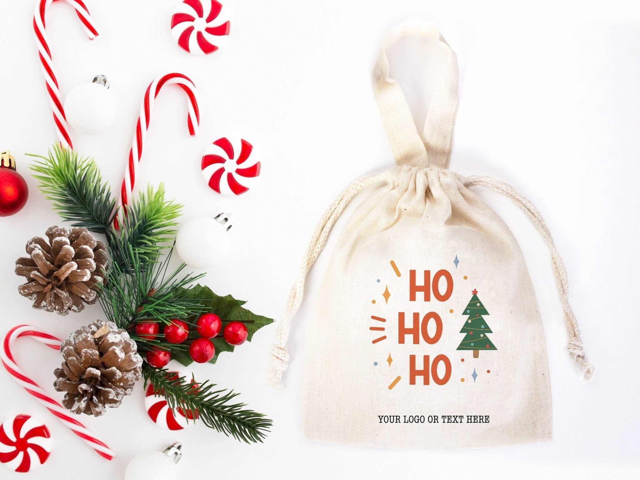 Customizable Ho Ho Ho Christmas Bags – Personalized Gift Bags for Holiday & New Year Gifts – Add Logo or Text
