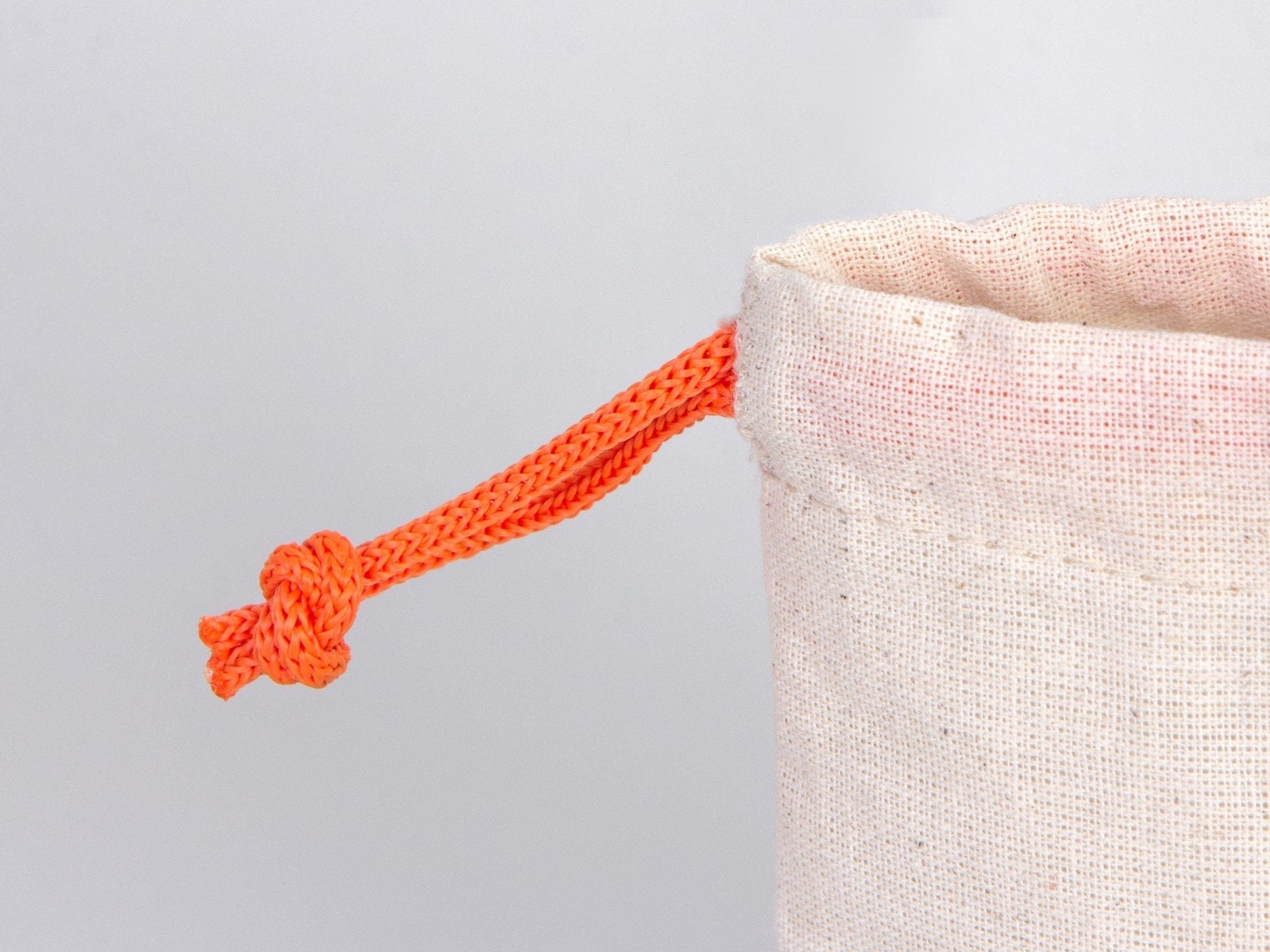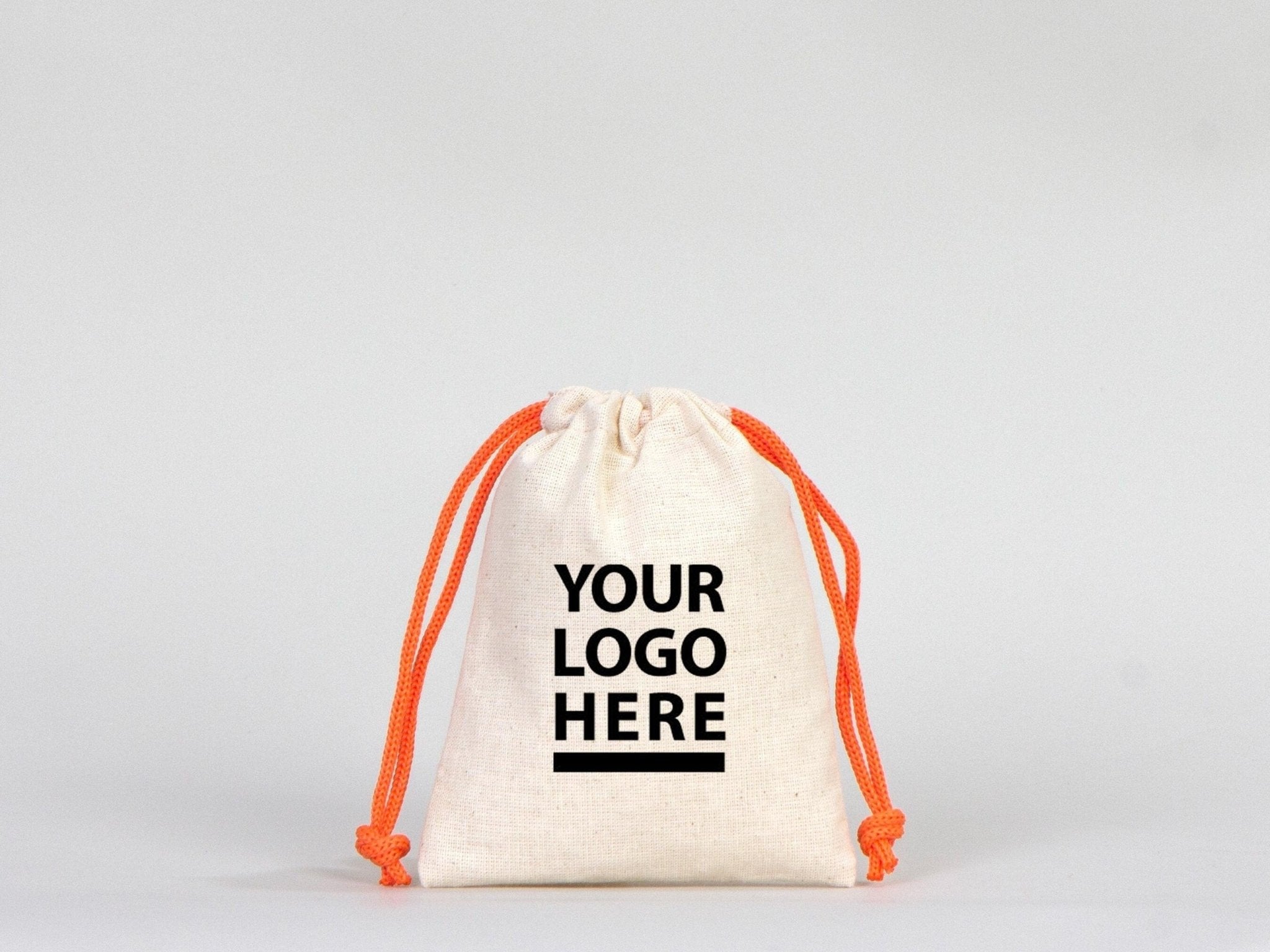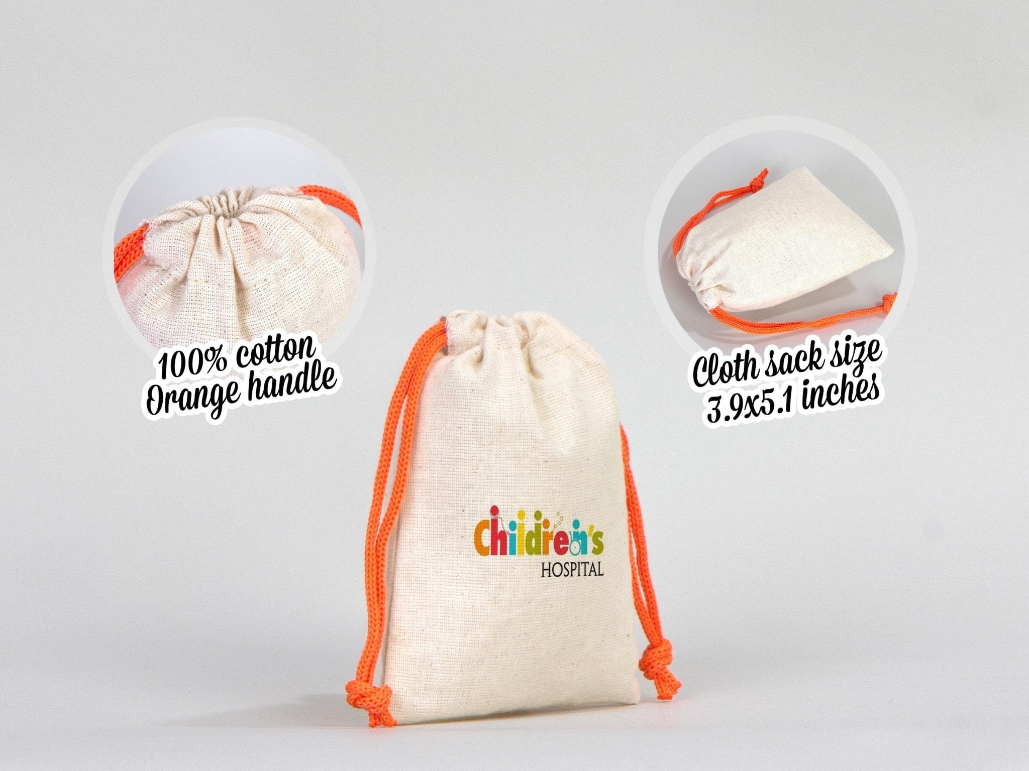 Drawstring Muslin Bags with Orange Handle – 4"W x 5"H (10 x 13 cm) – Hangover Kit Bag, Party Favor Bags, Bachelorette Gift, Jewelry Pouch