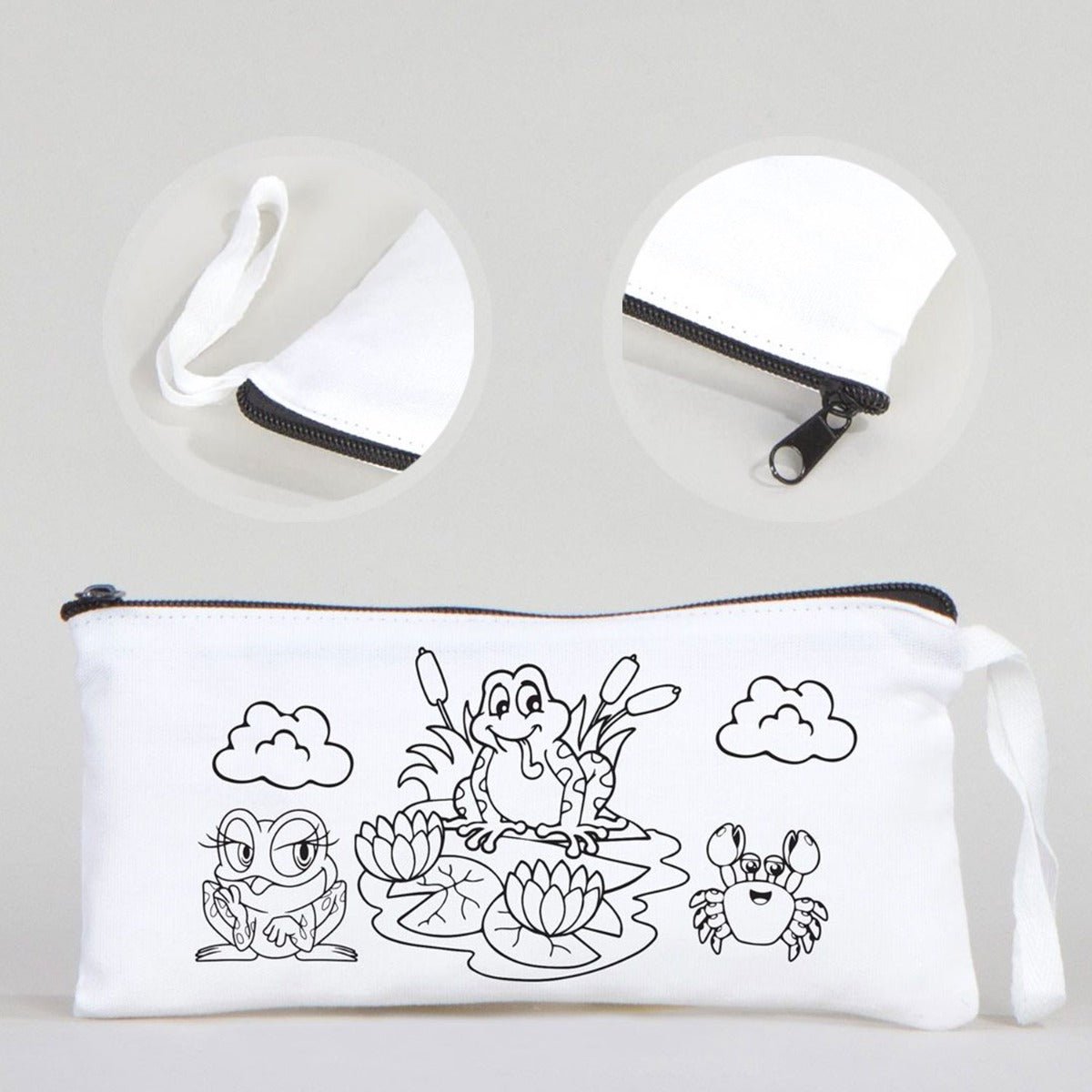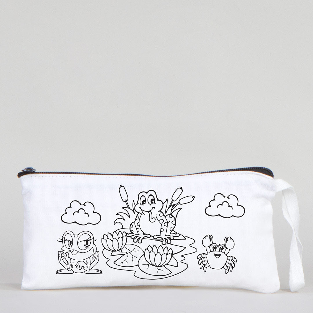 Dyeable Fabric Pencil Case 8" W x 4" H (21cm x 10cm) - Cute Frog