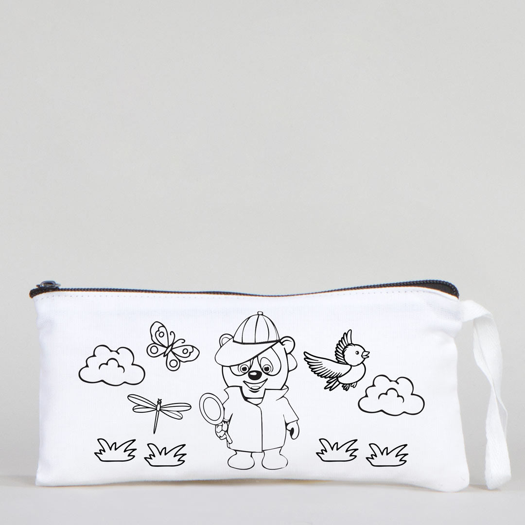 Dyeable Fabric Pencil Case 8" W x 4" H (21cm x 10cm) - Detective Bear
