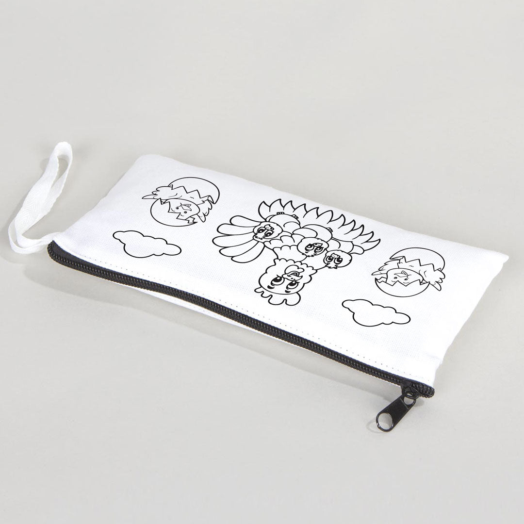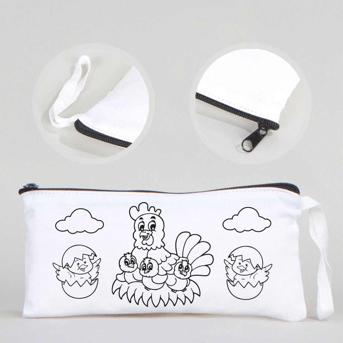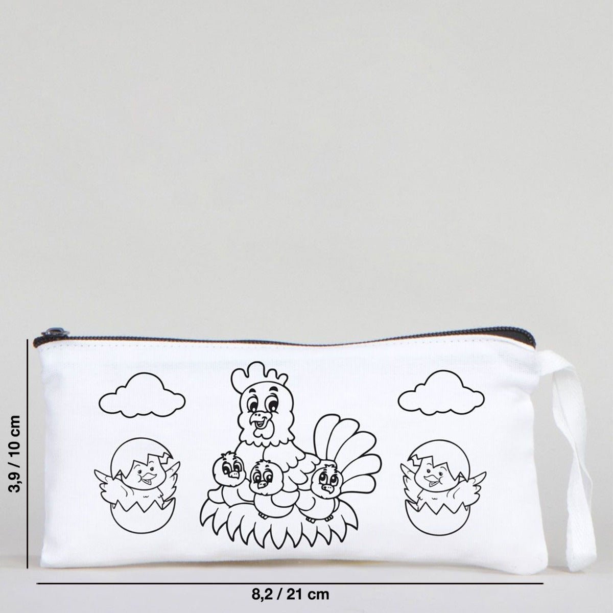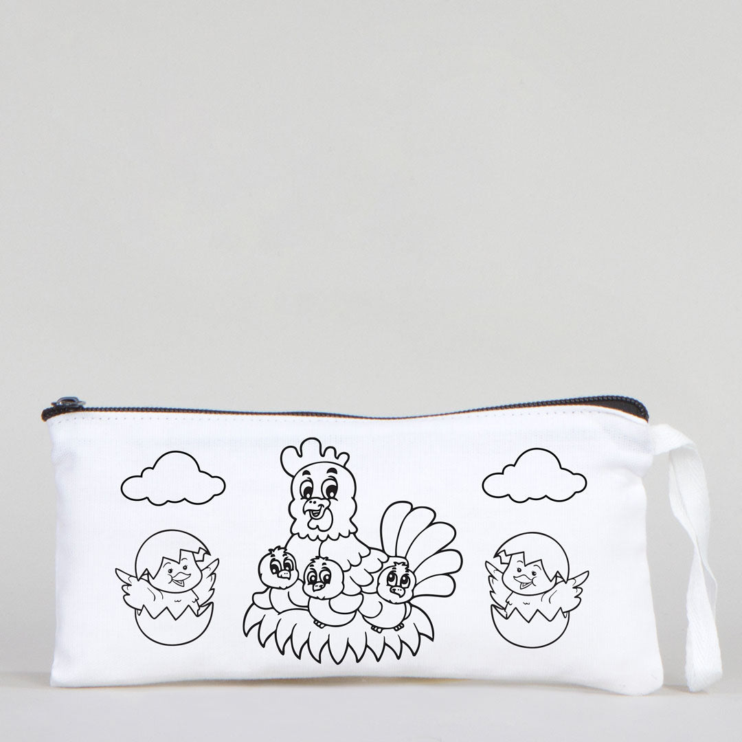 Dyeable Fabric Pencil Case 8" W x 4" H (21cm x 10cm) - Happy Chickens