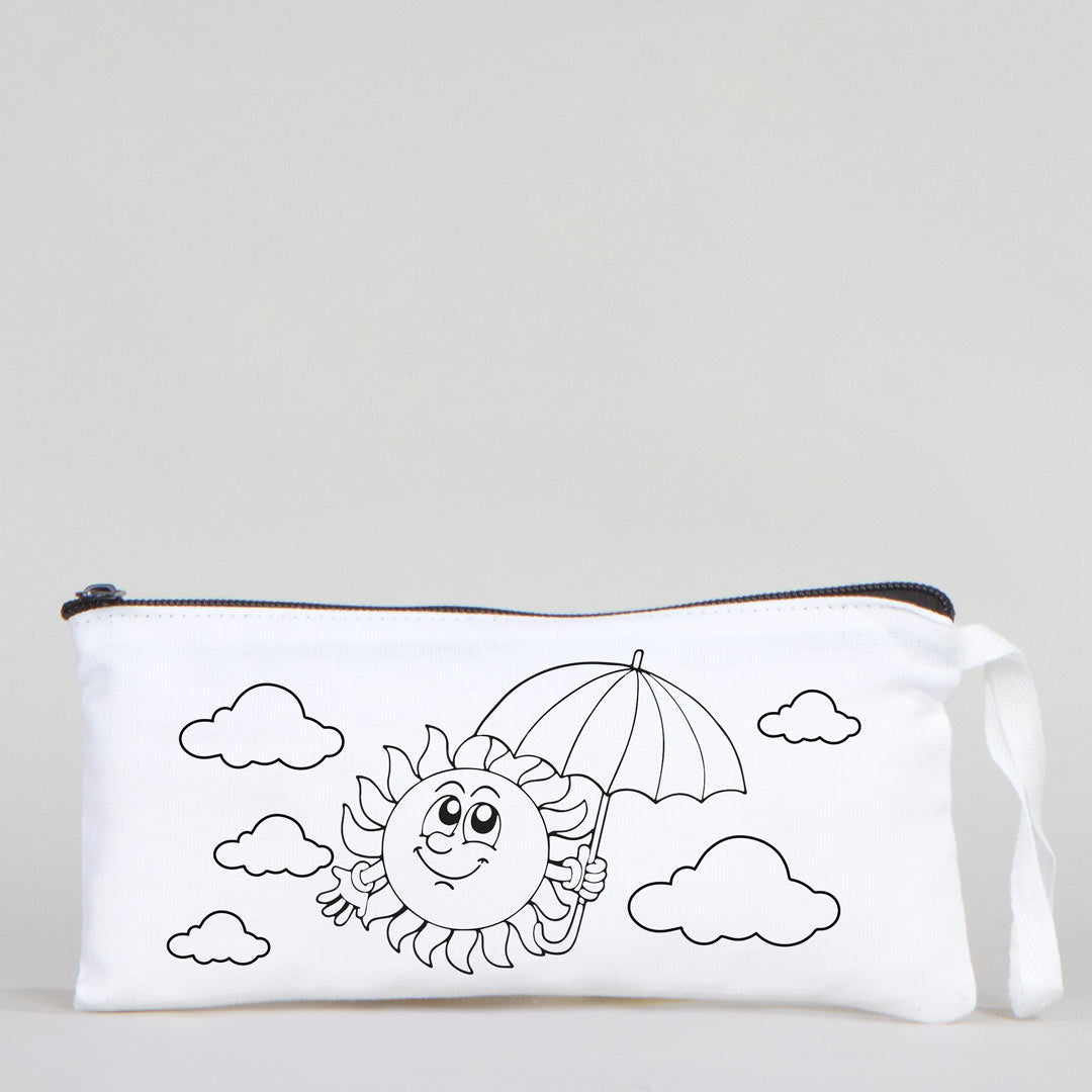 Dyeable Fabric Pencil Case 8" W x 4" H (21cm x 10cm) - Happy Sun