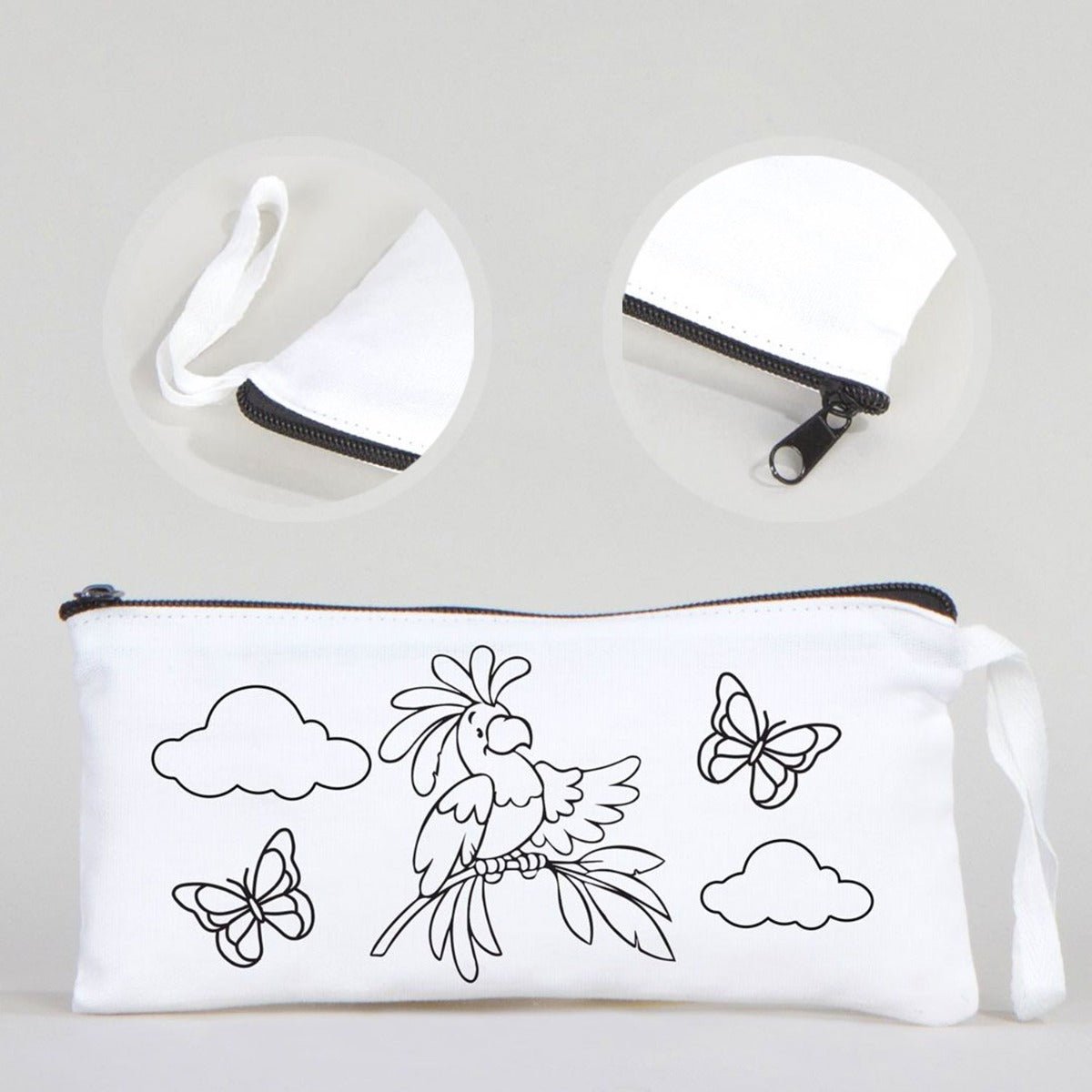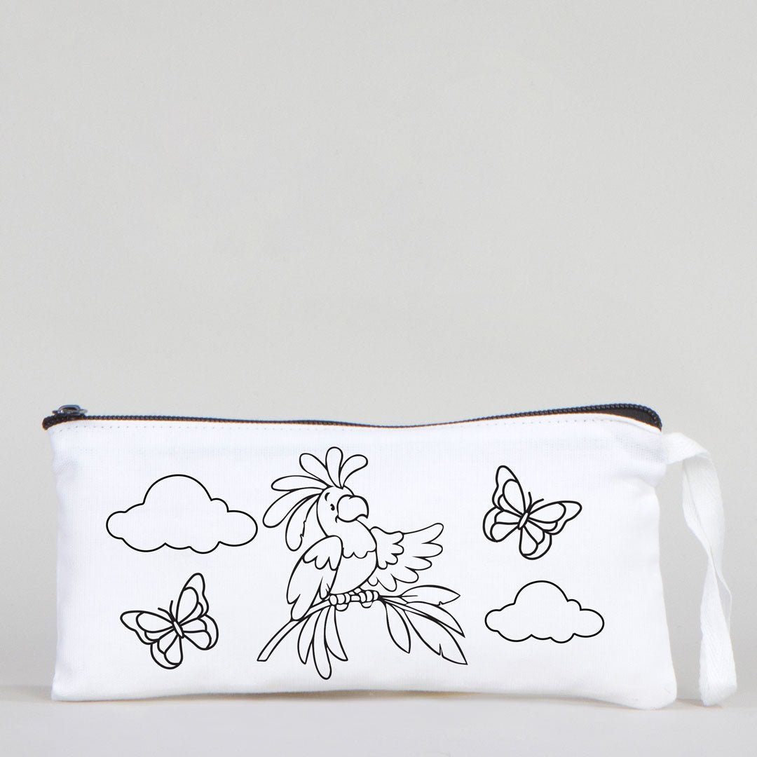Dyeable Fabric Pencil Case 8" W x 4" H (21cm x 10cm) - Parrot