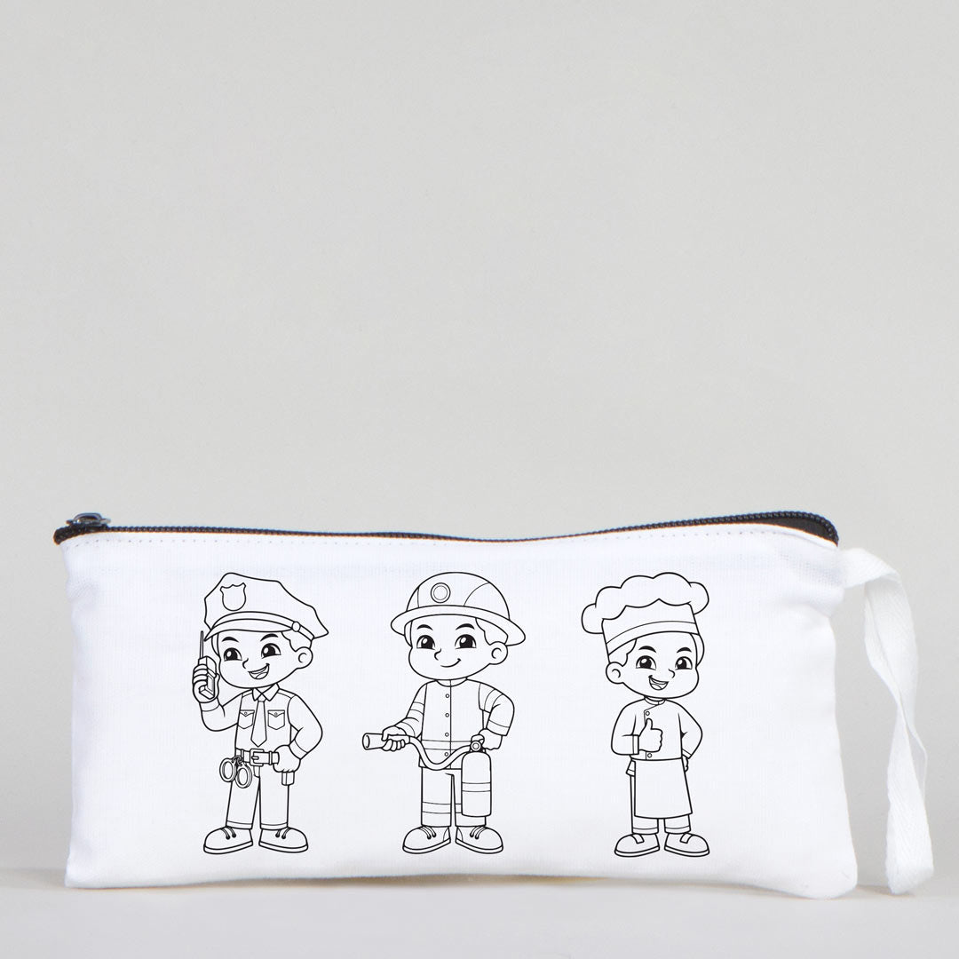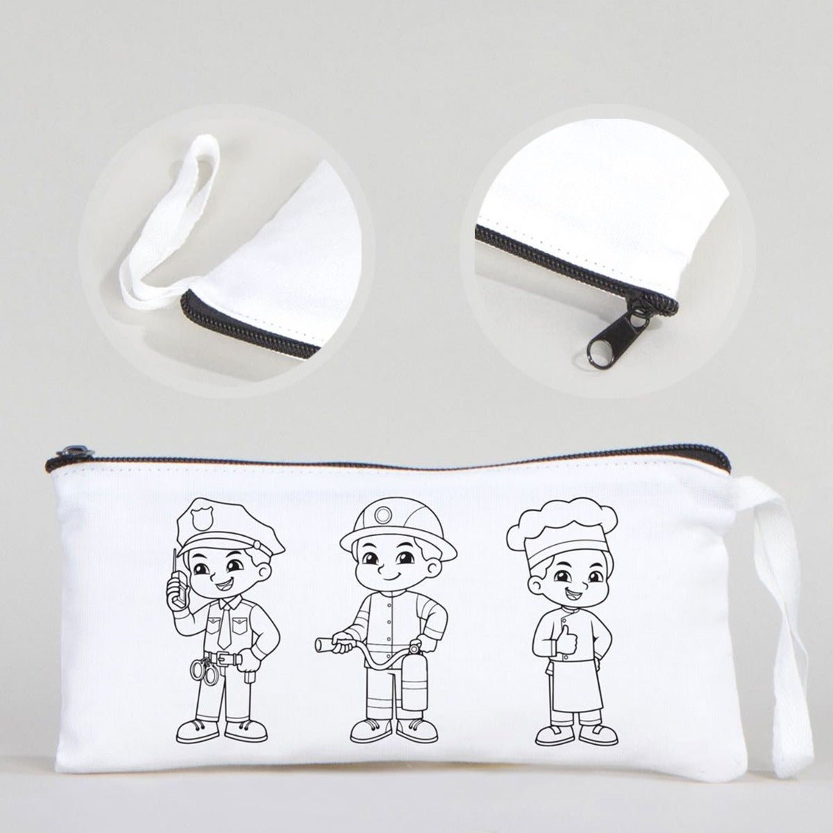 Dyeable Fabric Pencil Case 8" W x 4" H (21cm x 10cm) - Professions