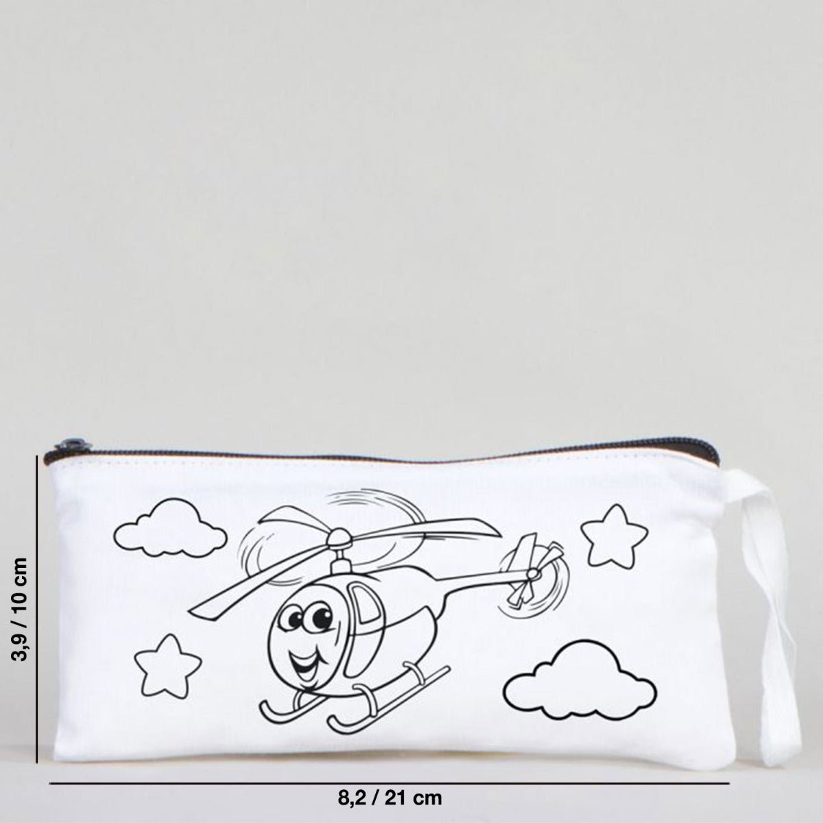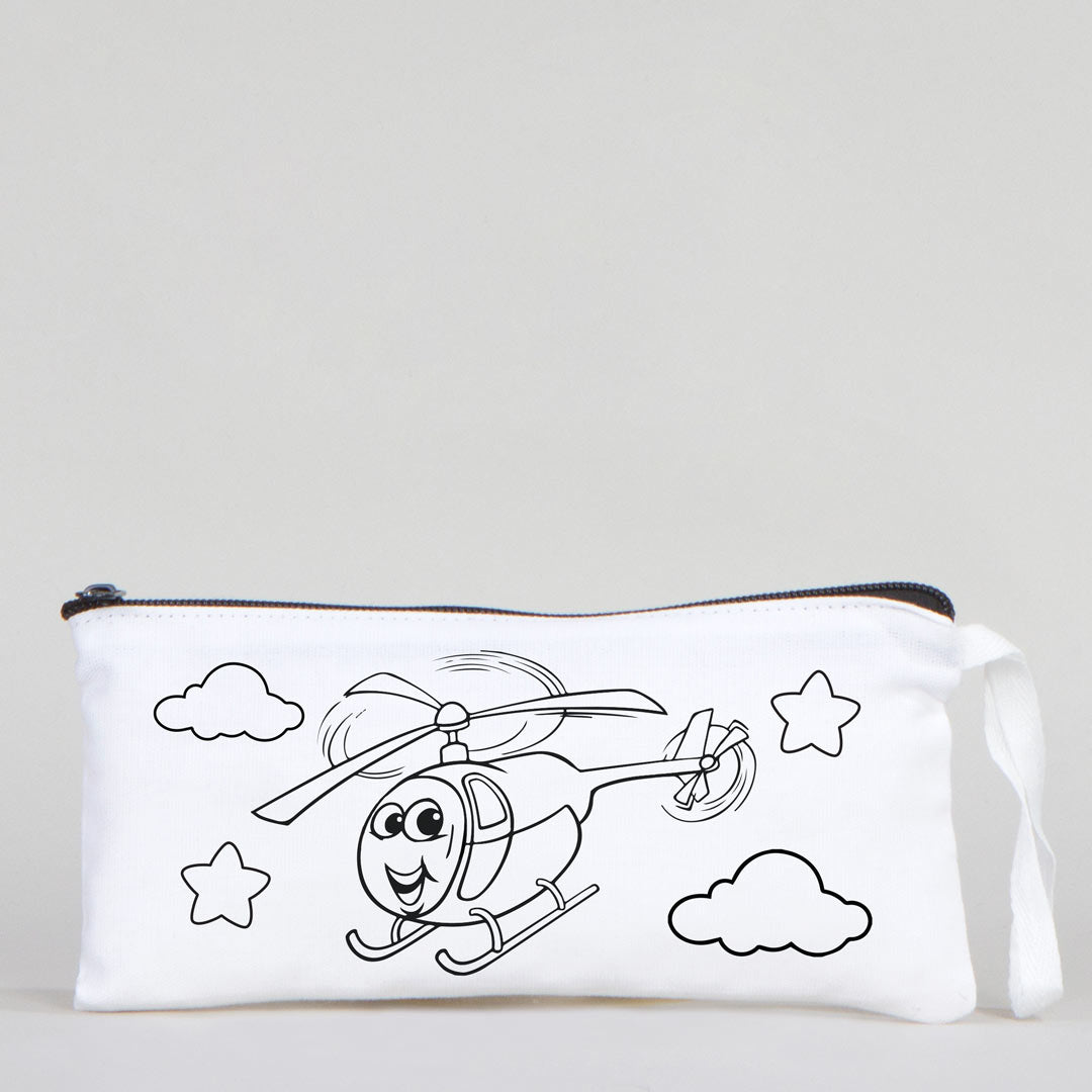 Dyeable Fabric Pencil Case - Sweet Helicopter - 8" W x 4" H (21cm x 10cm)