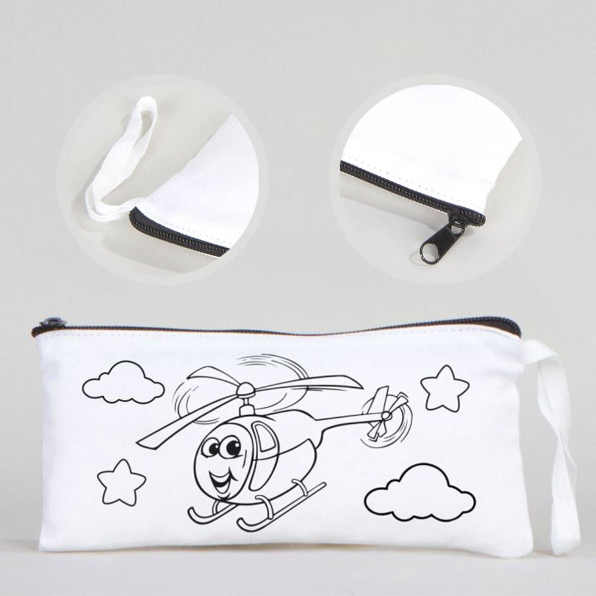 Dyeable Fabric Pencil Case 8" W x 4" H (21cm x 10cm) - Sweet Helicopter