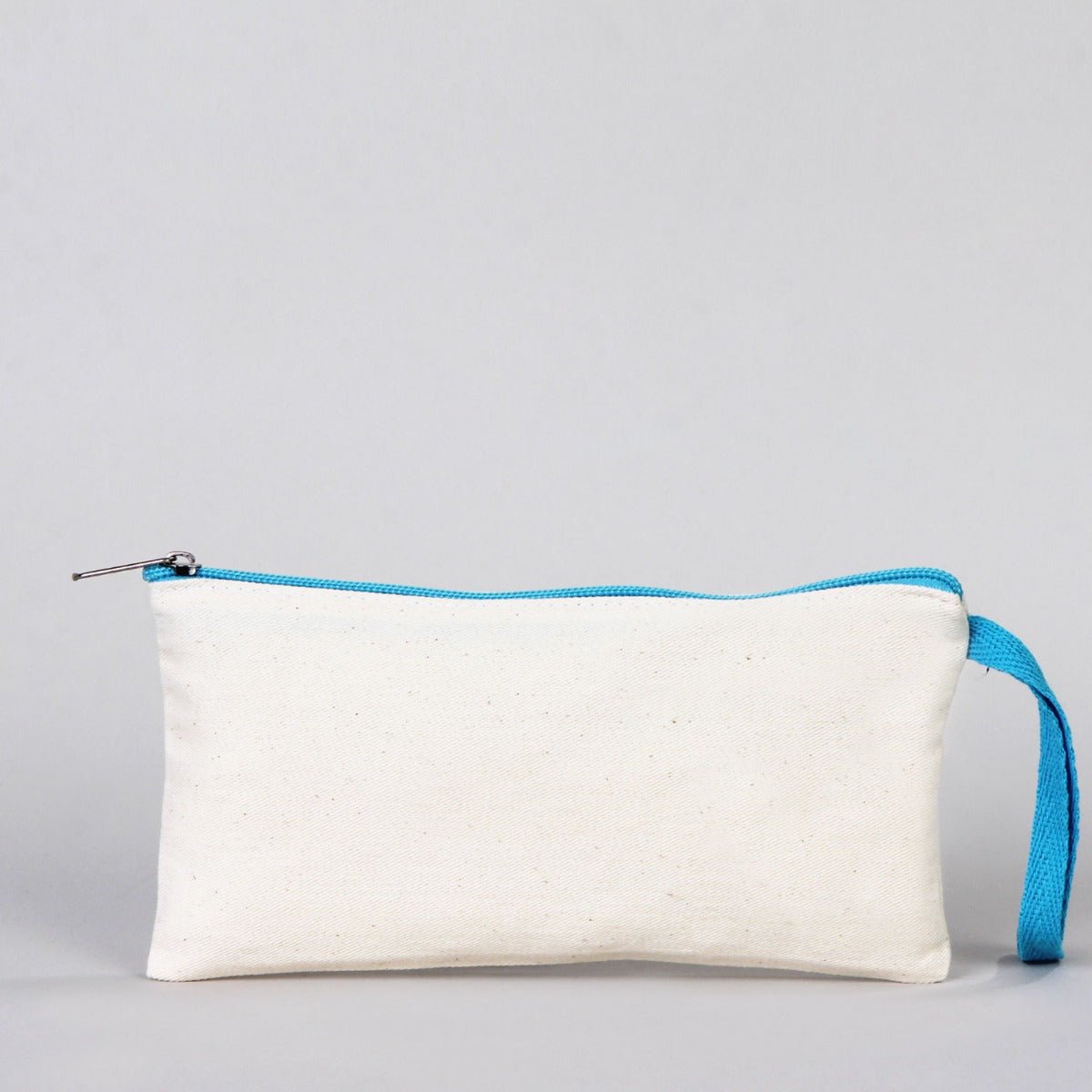 Fabric Pencil Case – 8"x4" Turquoise Zippered Cotton Pouch