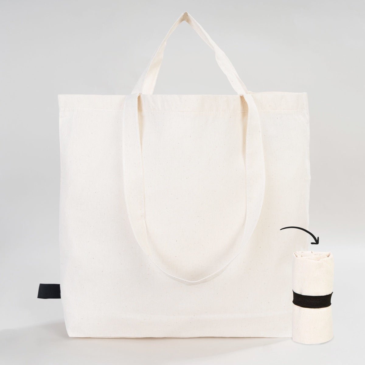 Foldable Cotton Shopping Tote Bag – 19" × 16" × 4" (48 × 41 × 10 cm) – 4 oz