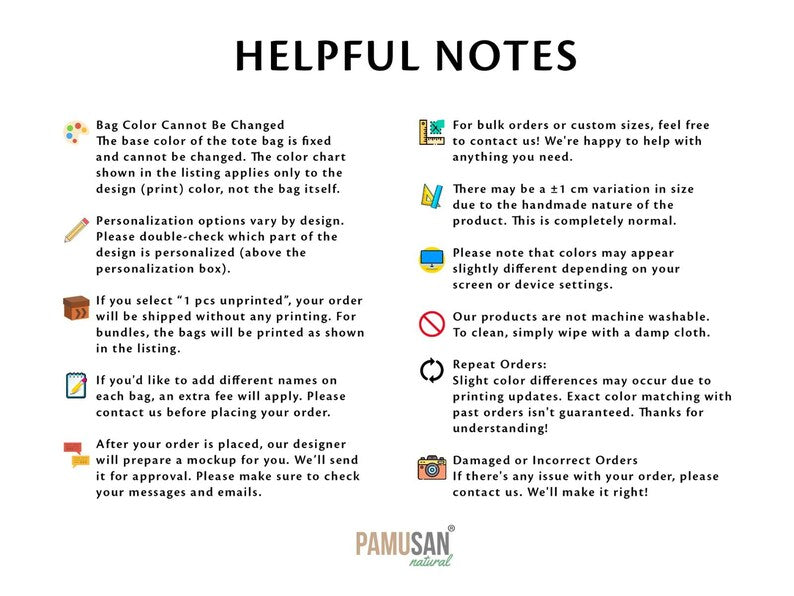 As these totes are made of cotton, slight shrinkage may occur during washing. Cold hand wash recommended.