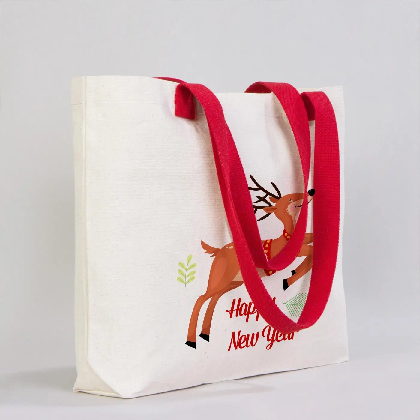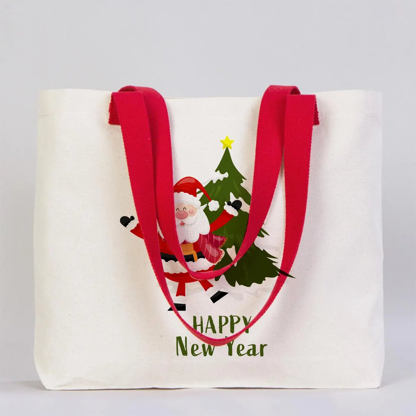Holiday Crew Christmas Tote – Santa Design, 18" x 14" x 3" (45 x 35 x 8 cm) Canvas Bag