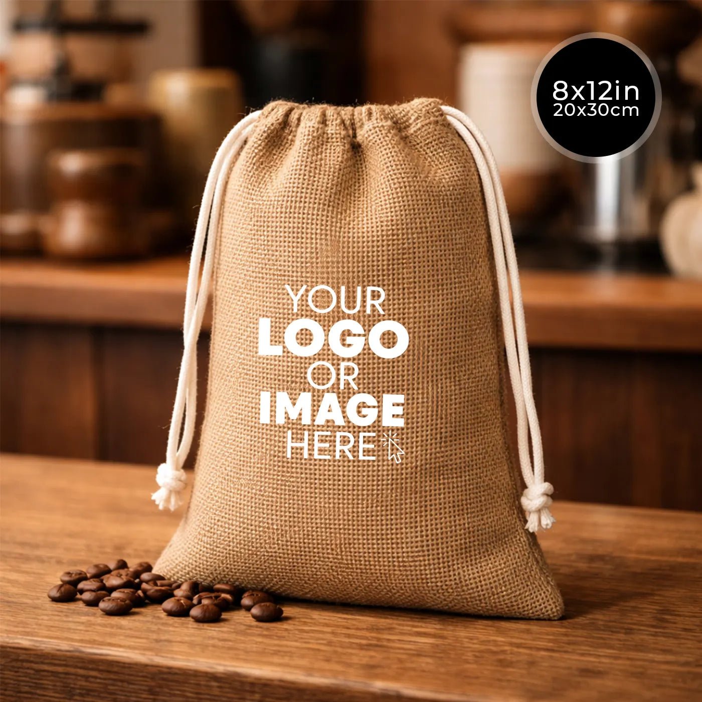Jute Drawstring Gift Bag – 8" × 12" (20 × 30 cm) – Natural Burlap