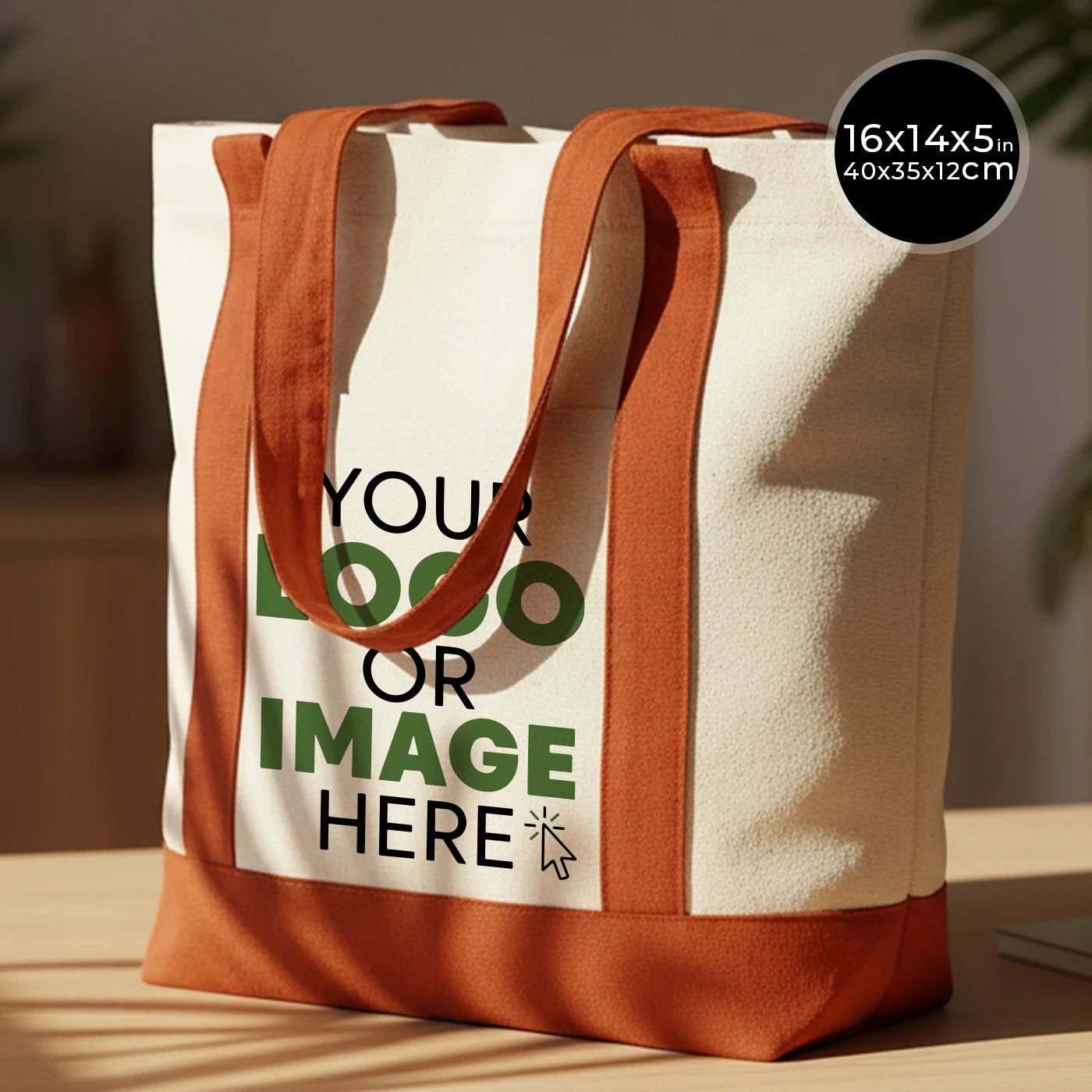 Large Trend Canvas Shopping Bag with Brown Handle, 16"W x 14"H x 5"L, Large Tote Bag 12 Oz, Personalized