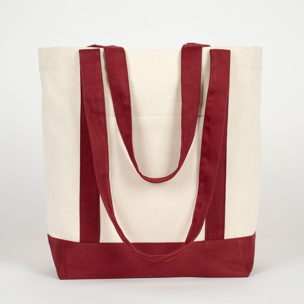 Large Canvas Tote Bag with Burgundy Handles – Sustainable & Heavy Duty Canvas Bag