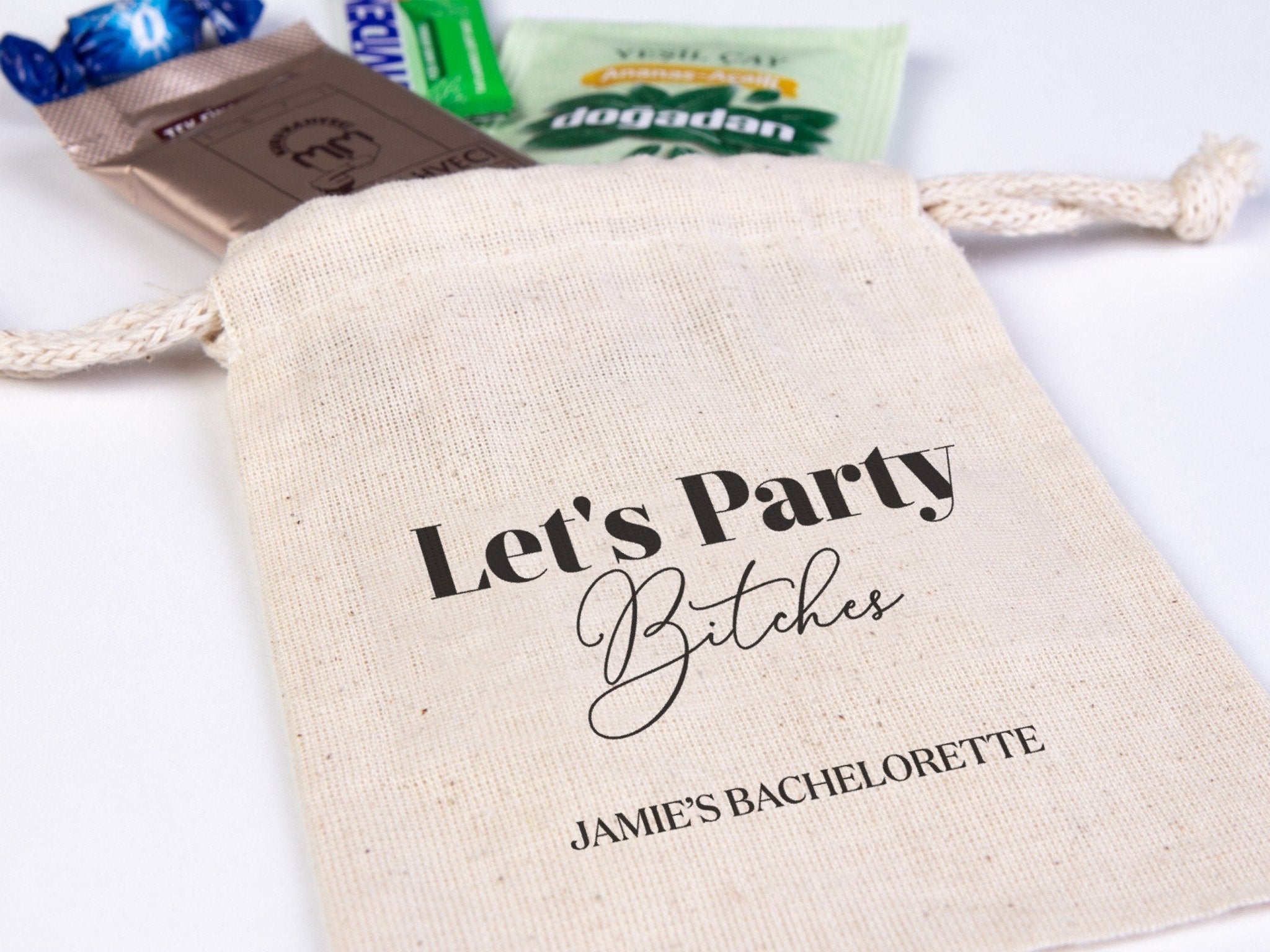 Let’s Party Bitches Hangover Kit Bags – Custom Bachelorette Survival Pouch, Organic Cotton Bags