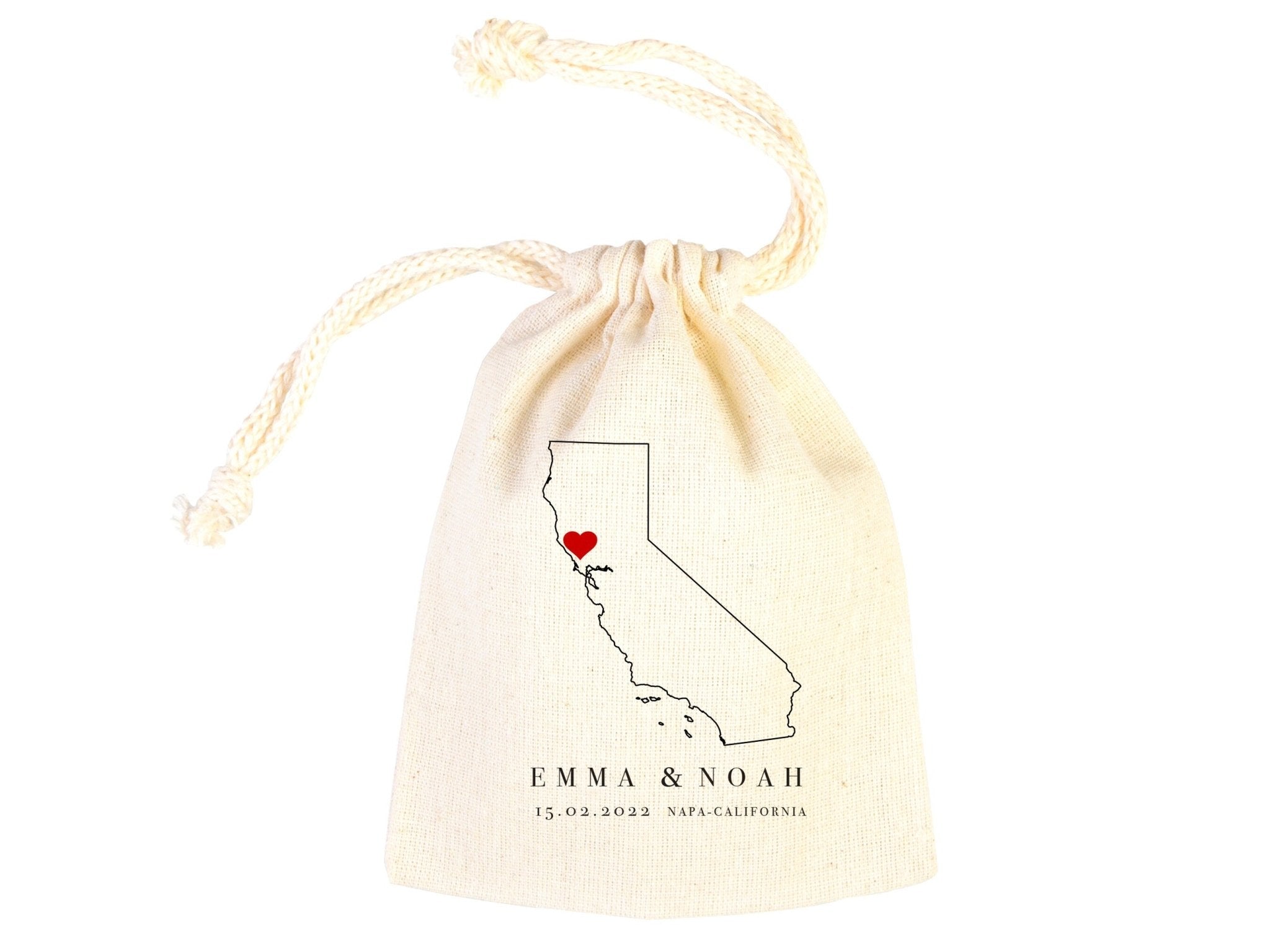 Napa Valley Wedding Favor Bags – Custom California Map Gift Pouch with Names & Date