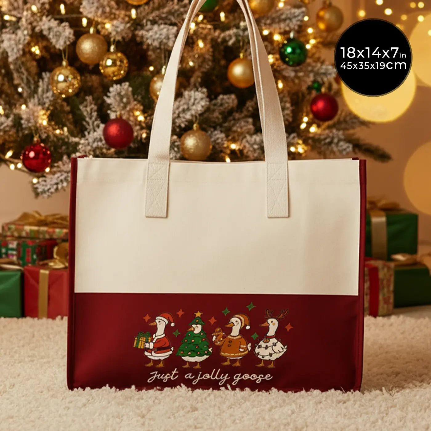 New Year Canvas Tote Bag 18" × 14" × 7.5" – Burgundy Holiday Gift Bag (18 Designs)