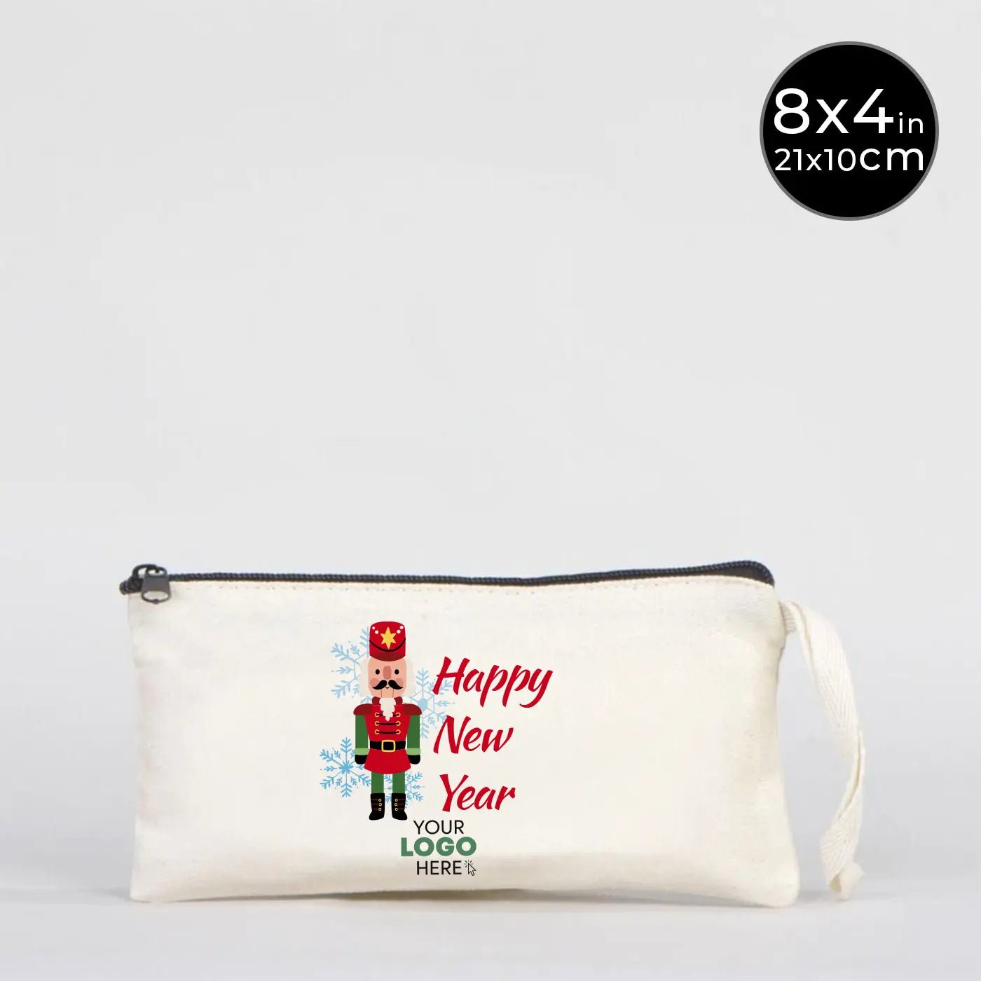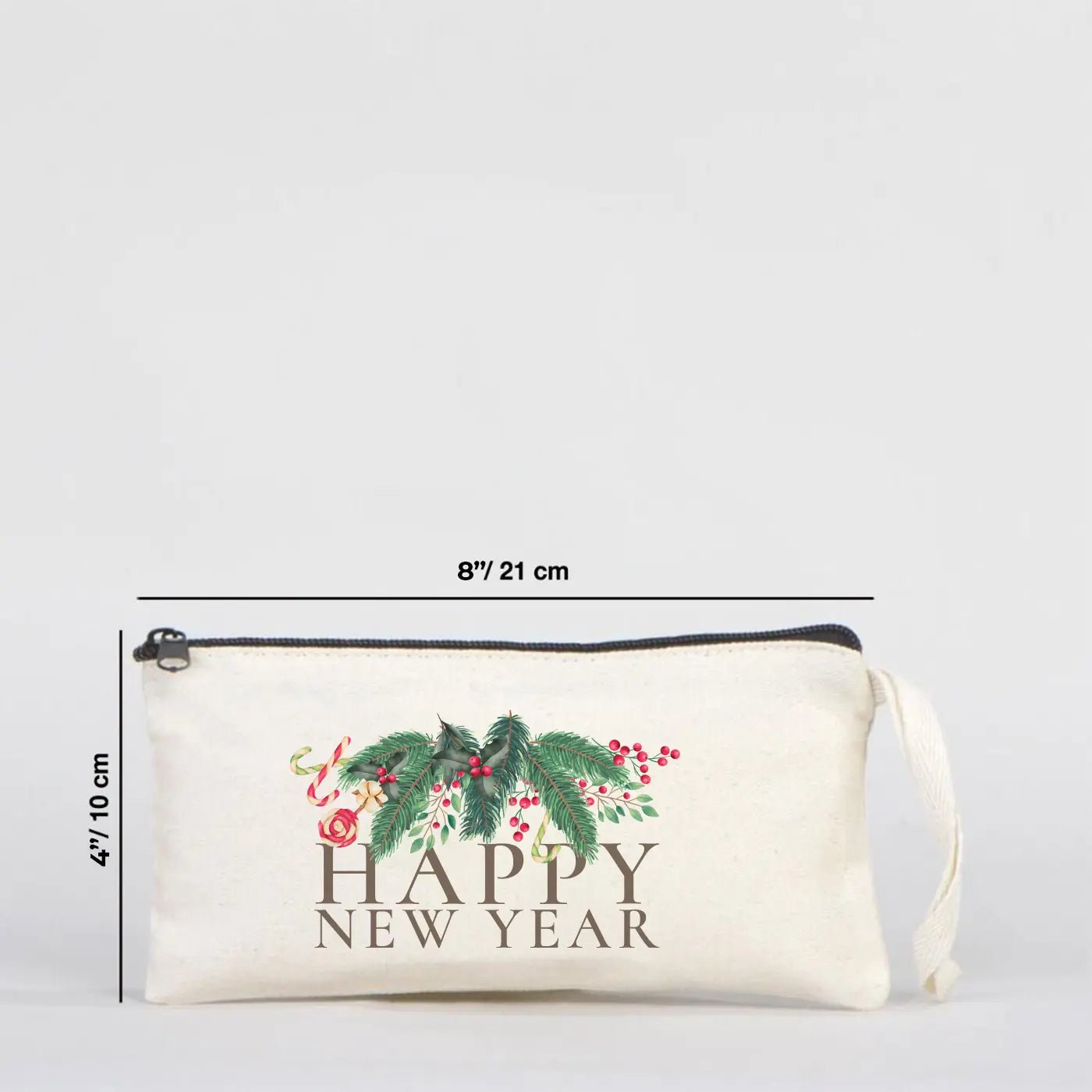 New Year Cotton Pencil Pouch 8" × 4" (21 × 10 cm) – Personalized Holiday Gift Bag