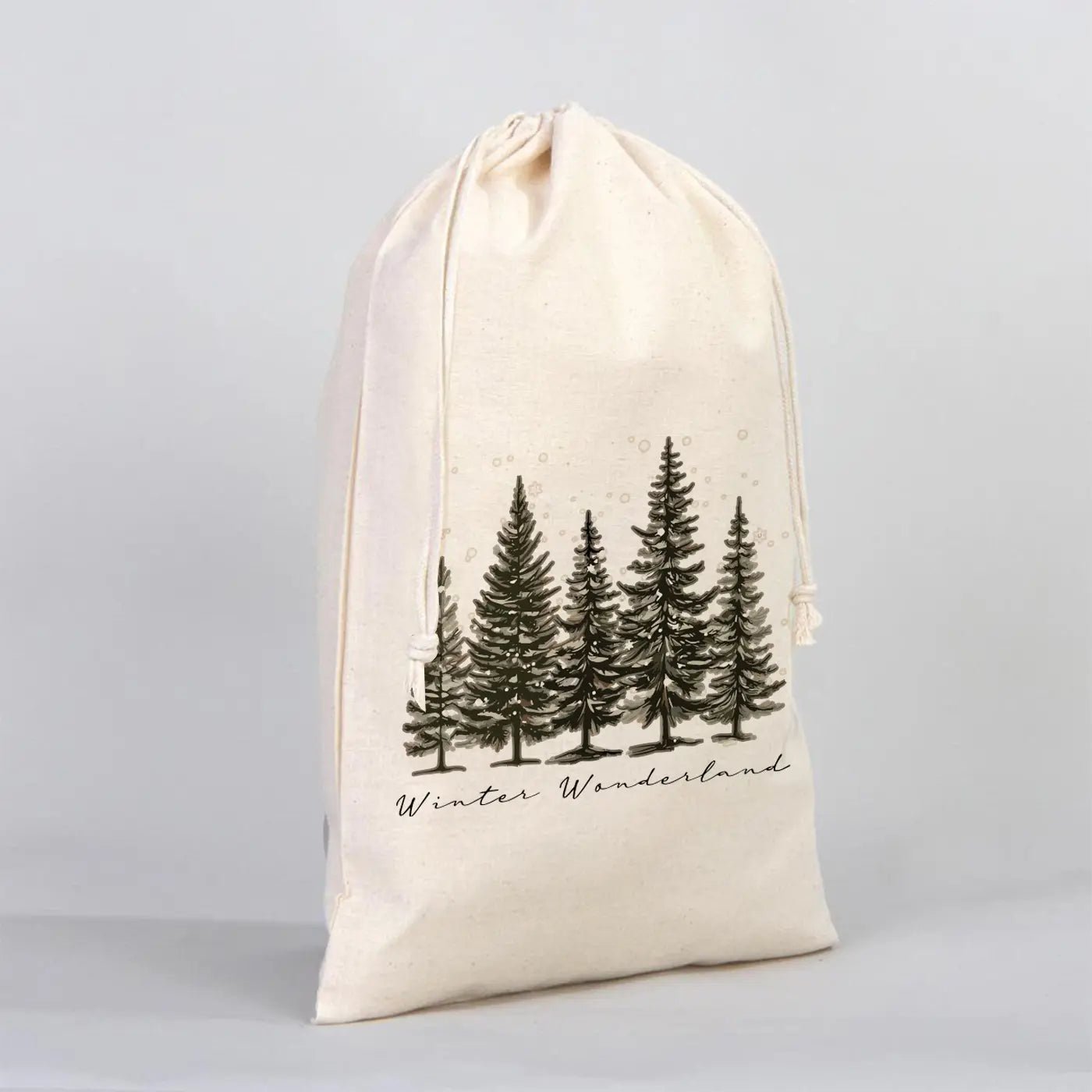 New Year Drawstring Pouch 8" × 12" (20 × 30 cm) – Natural Cotton Gift Bag for Festive Gifts