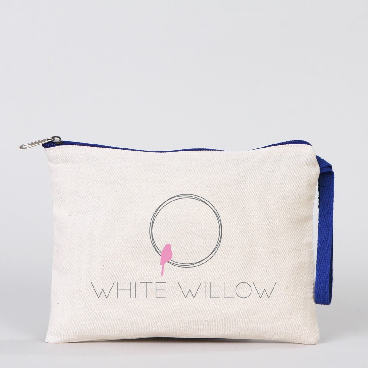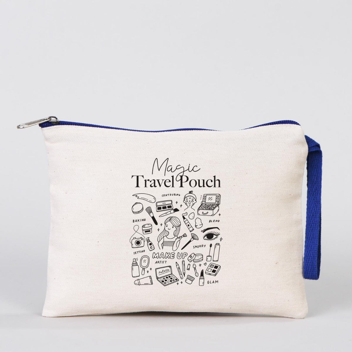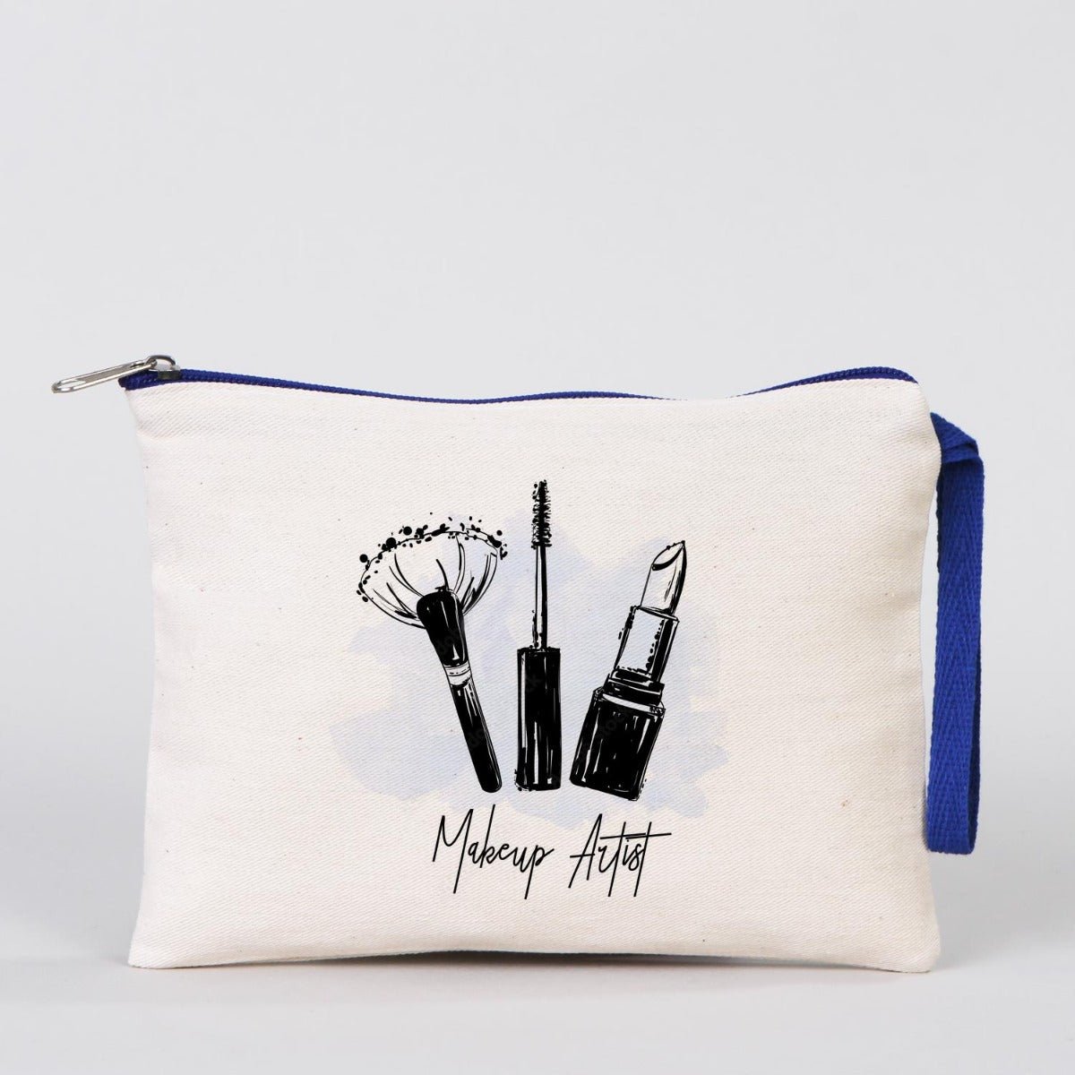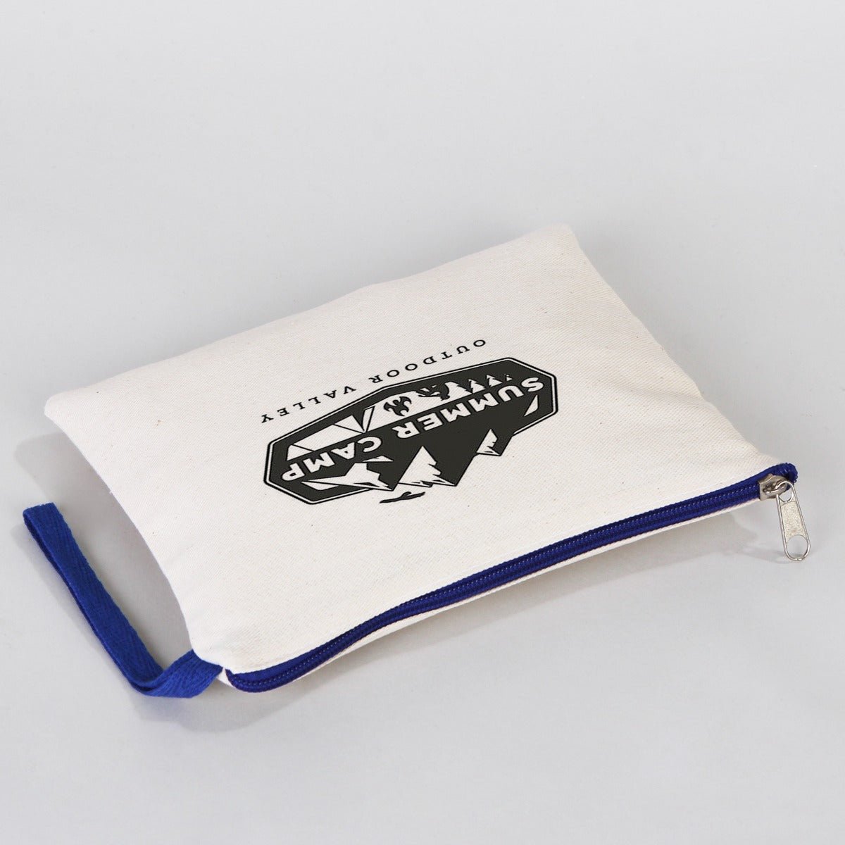 Personalized Dark Blue Zippered Clutch Bag – 8"x6" Custom Cotton Pouch