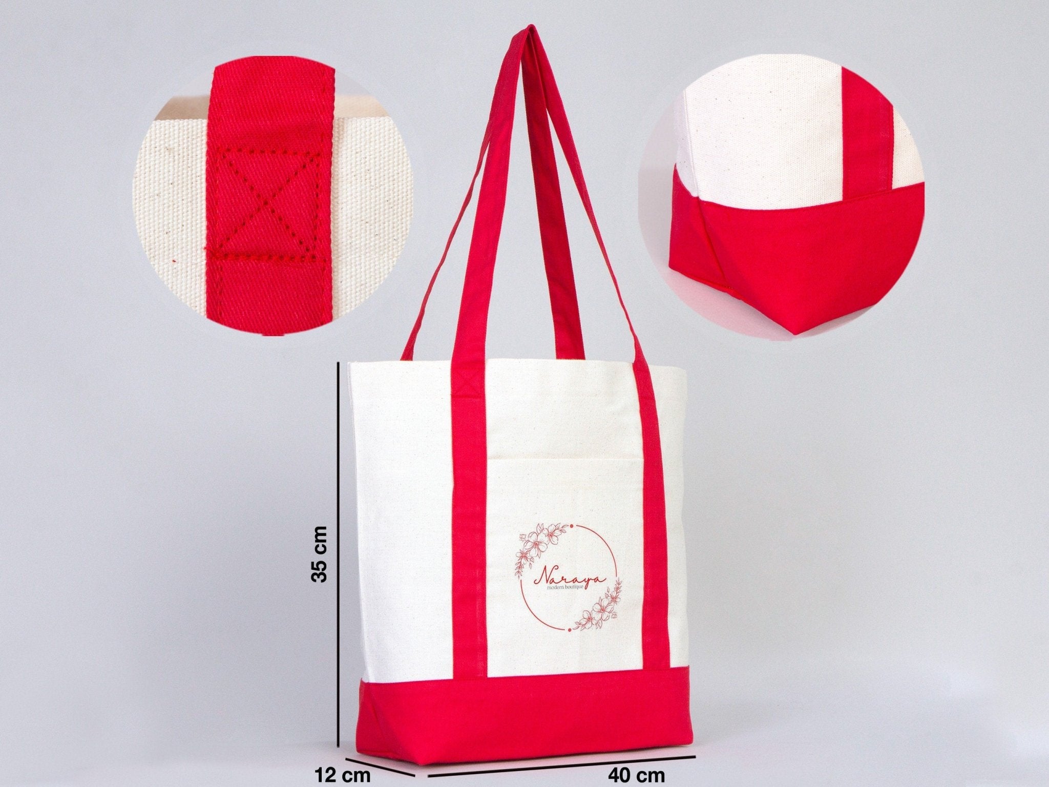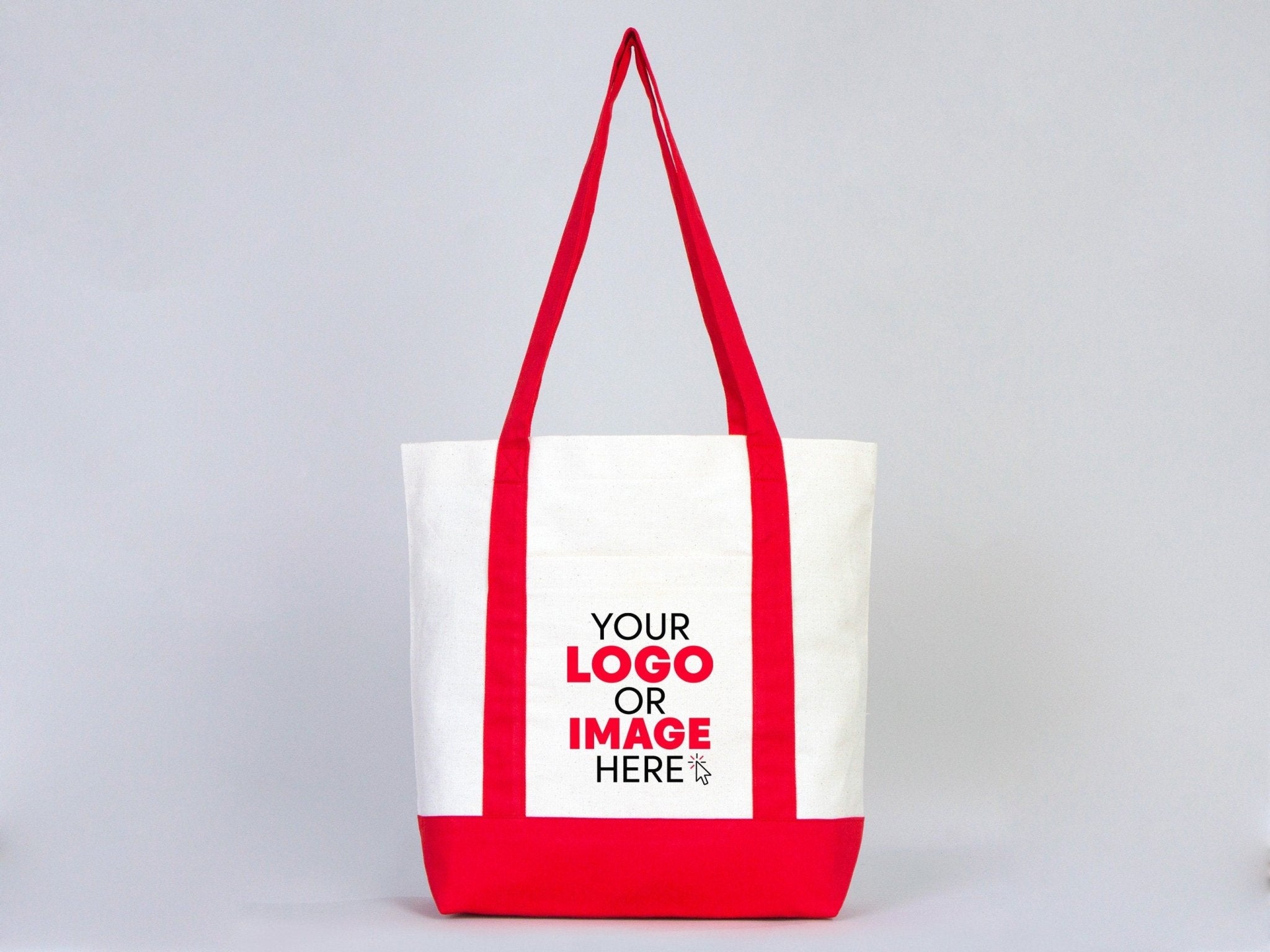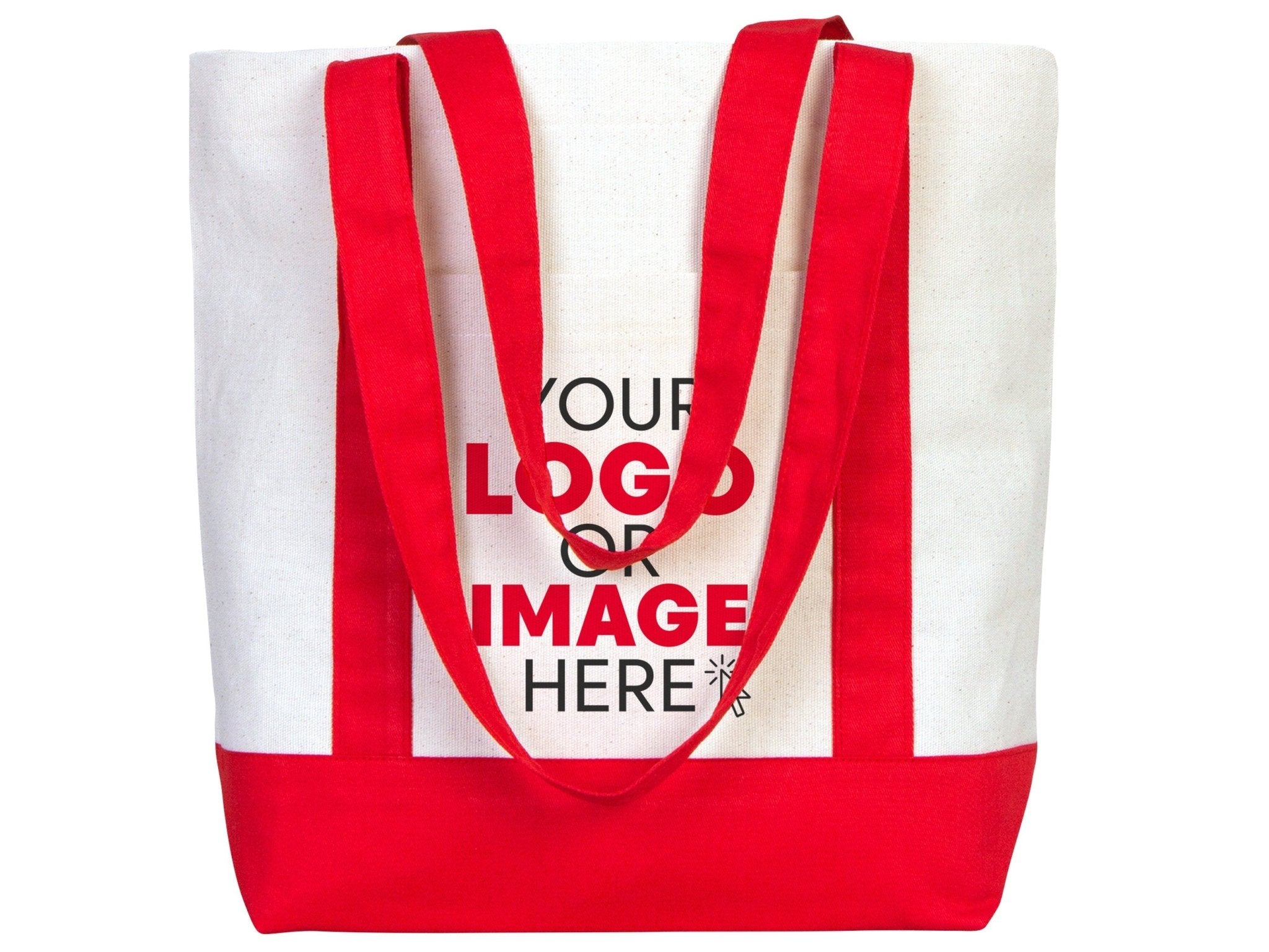 Large Trend Canvas Shopping Bag with Red Handle, 16"W x 14"H x 5"L, Large Tote Bag 12 Oz, Personalized