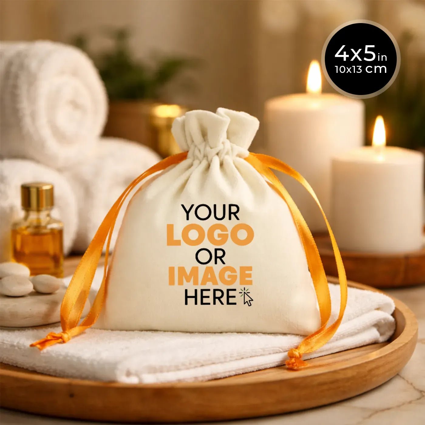 - High Quality: Crafted from premium soft velvet fabric, these pouches provide a luxurious feel and strong stitching. Your custom print—logo, text, initials, or artwork is applied with high precision, ensuring a professional and long-lasting branded finish.