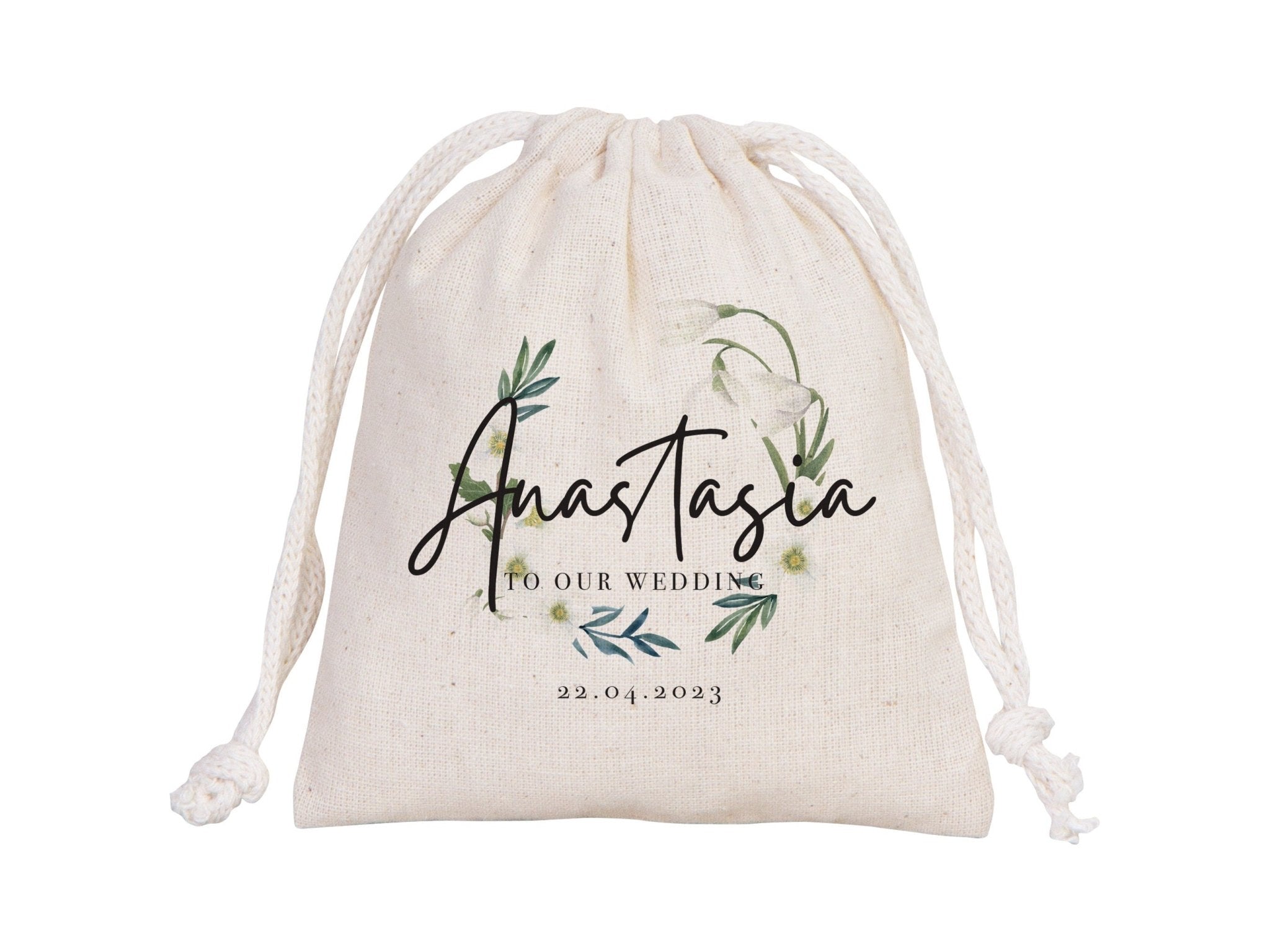Personalized Wedding Favor Pouches – Custom Bridesmaid Drawstring Bags – Bridal Party Gift Sacks